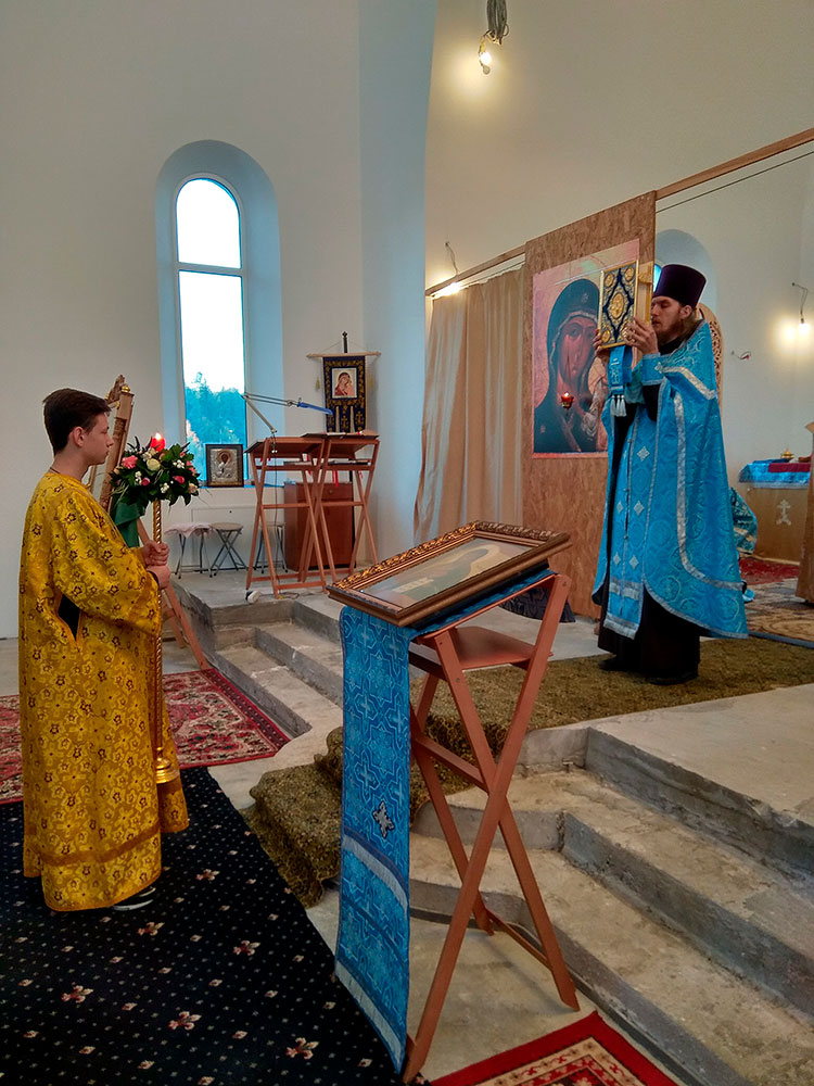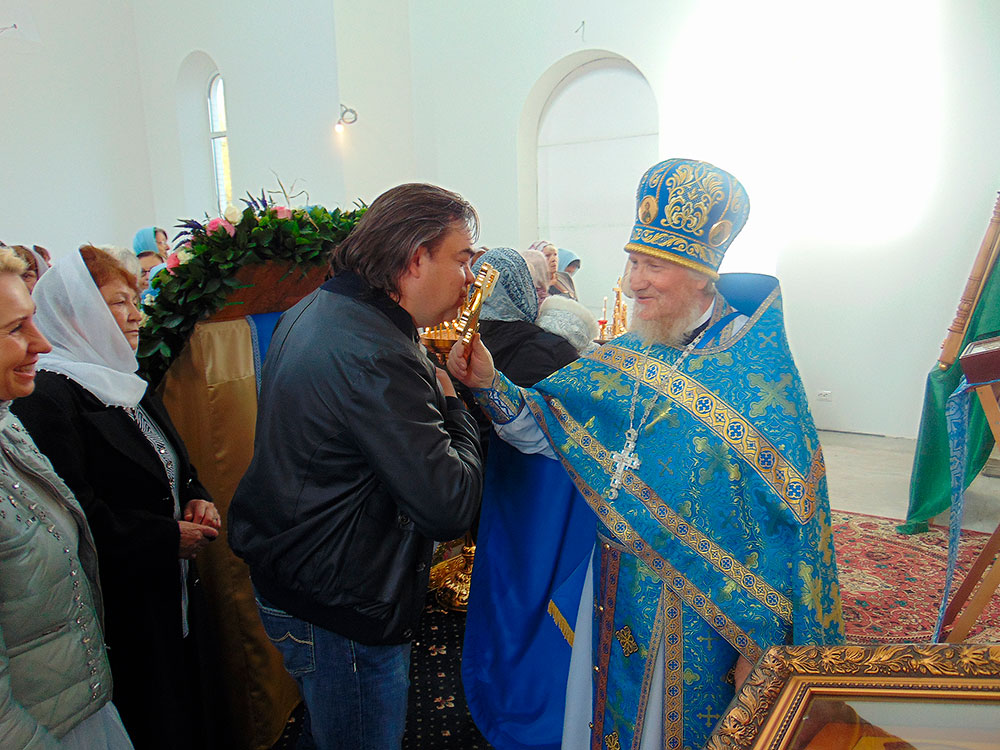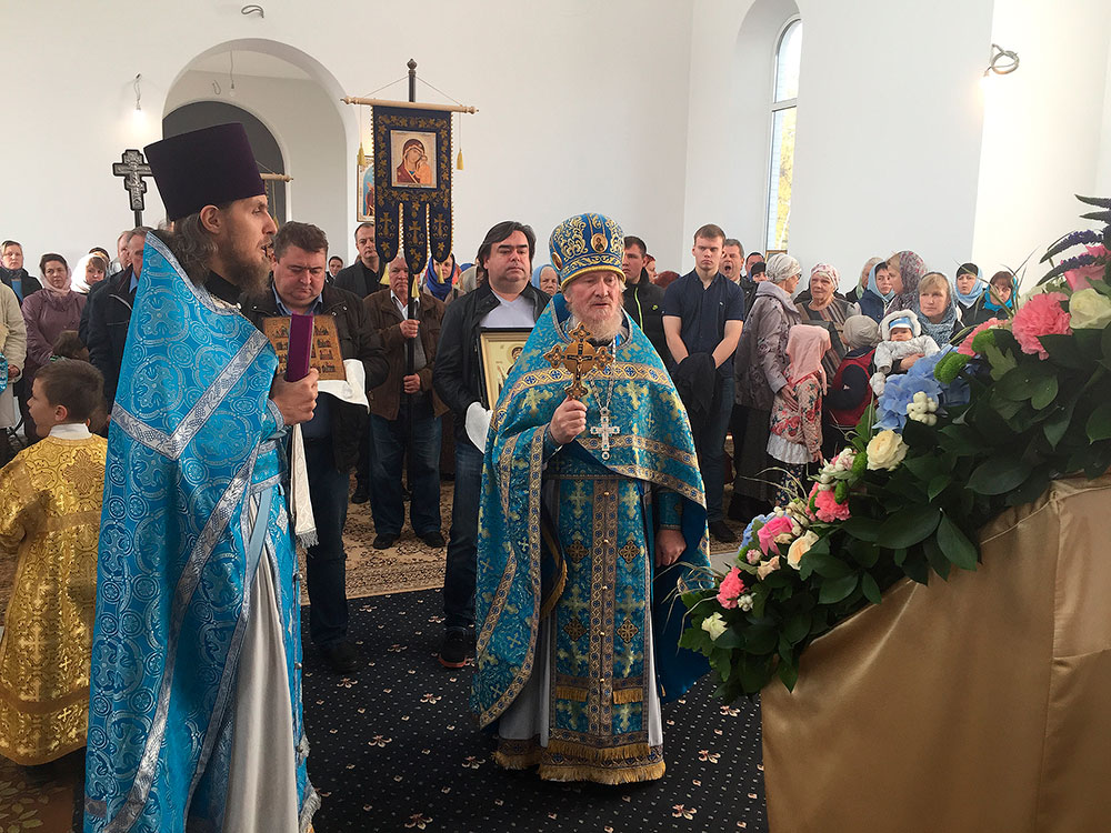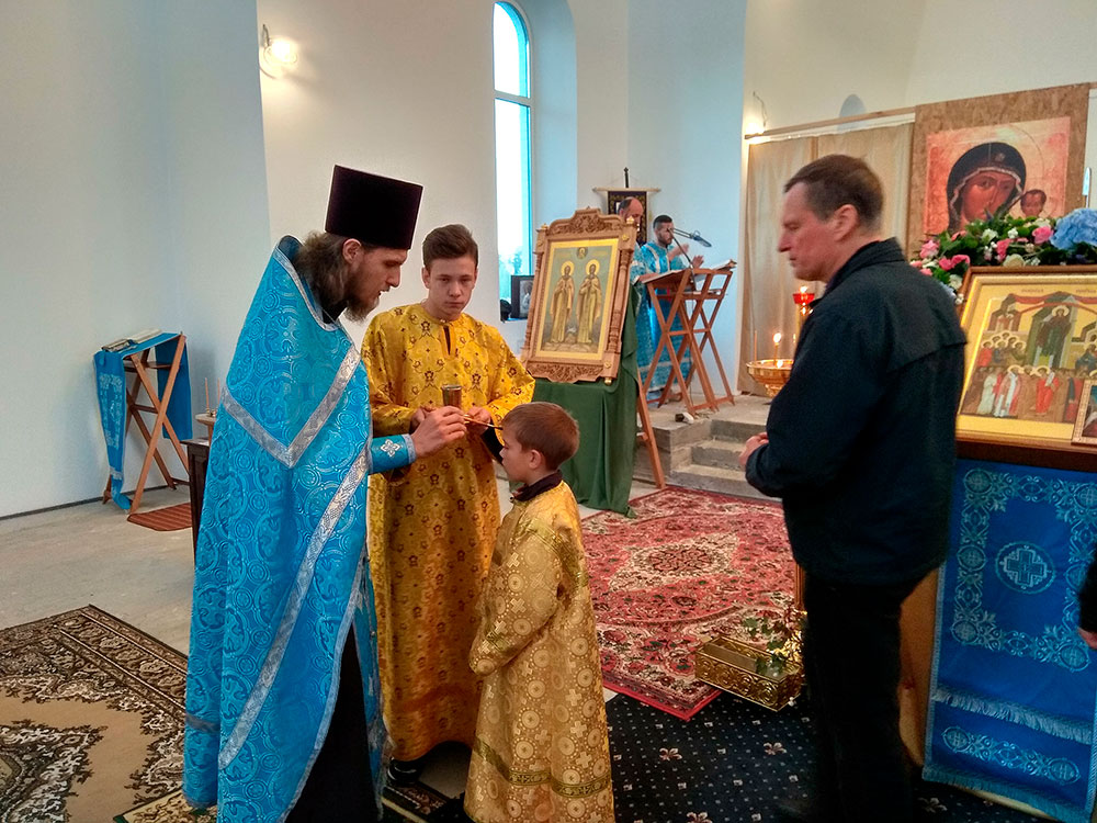 После литургии был совершен праздничный молебен с крестным ходом вокруг храма, по окончании которого отец Андрей обратился к прихожанам со словами поздравления с престольным праздником.