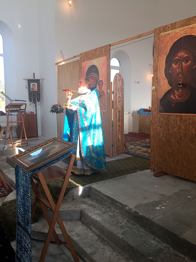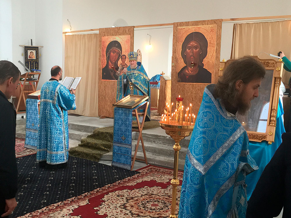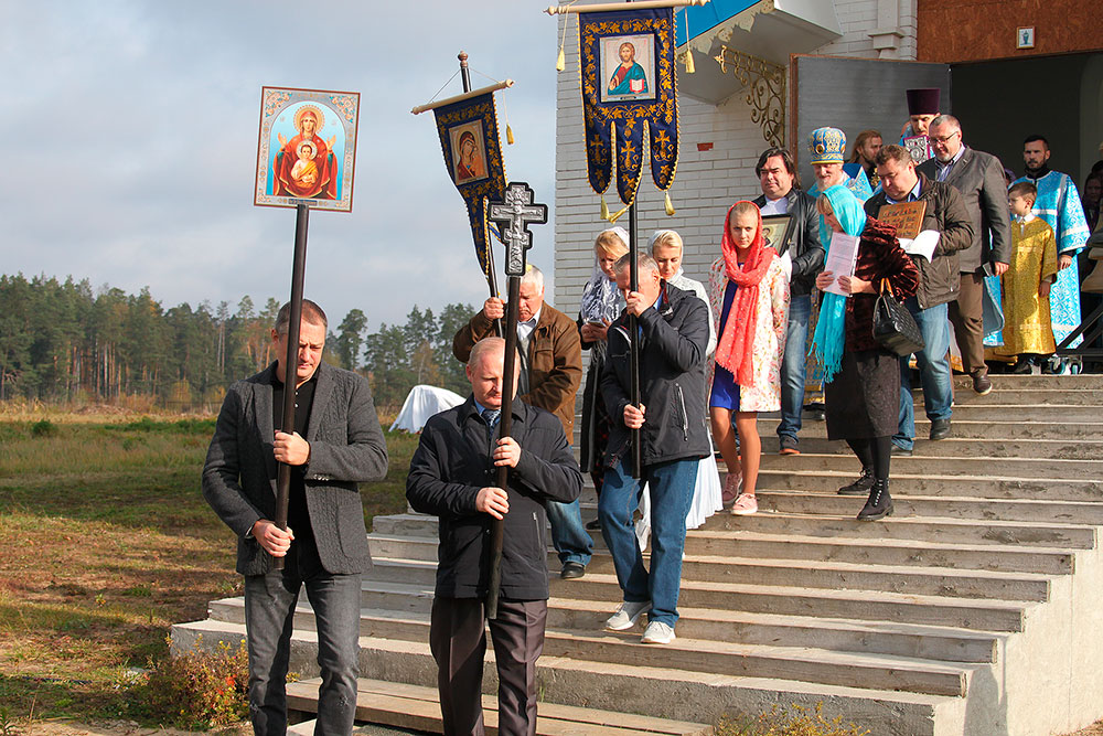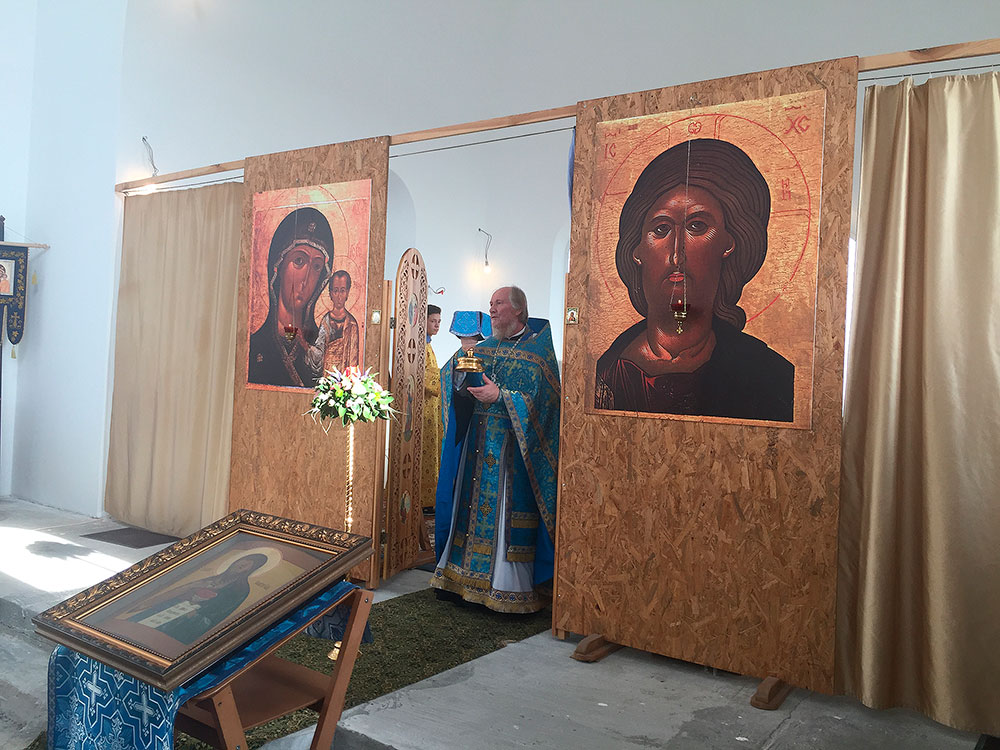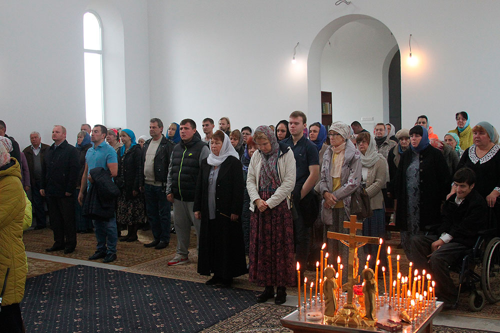 После литургии был совершен праздничный молебен с крестным ходом вокруг храма, по окончании которого отец Андрей обратился к прихожанам со словами поздравления с престольным праздником.