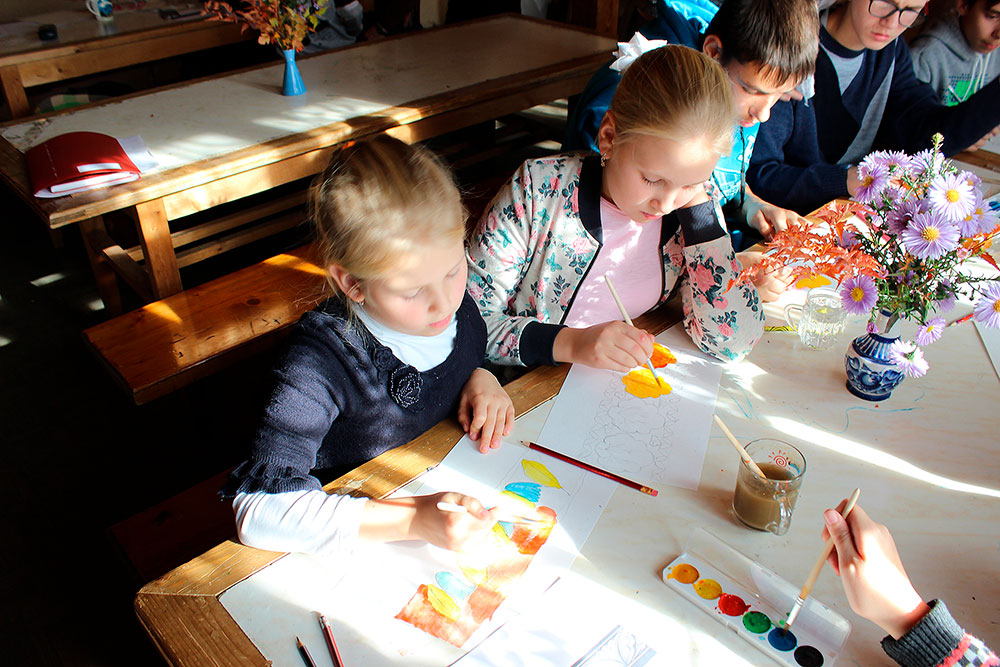 Ребята присутствовали на Божественной Литургии, исповедовались и причащались Святых Христовых Таин, а затем вместе с учениками Воскресной школы приняли участие в общей трапезе и уроке. Занятие было посвящено жизни святого прп. Сергия Радонежского и празднику Покрова Пресвятой Богородицы. На занятии присутствовал настоятель храма священник Илия Плешаков и клирик храма священник Кирилл Серышев. После занятия все получили подарки.