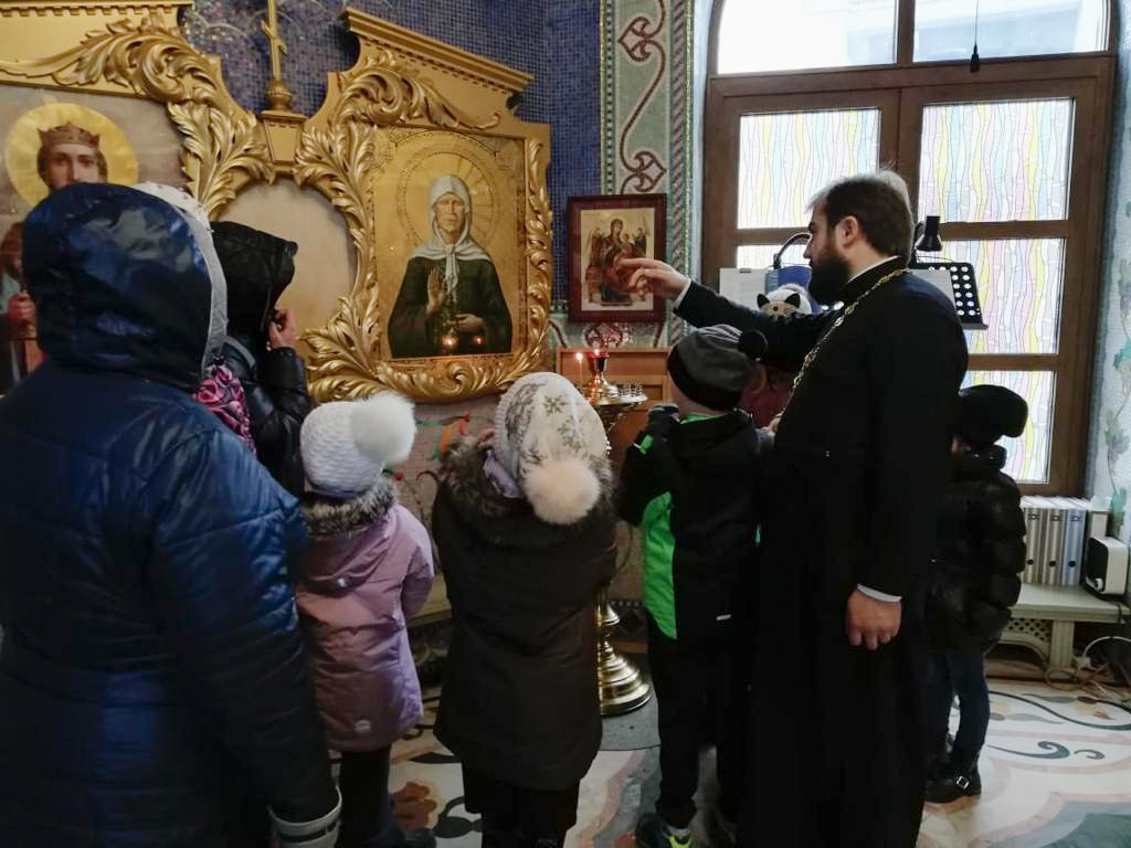 Настоятель храма священник Виталий Крикота провел гостям экскурсию по храму и дал детям духовные наставления. После экскурсии всех детей ждали подарки.