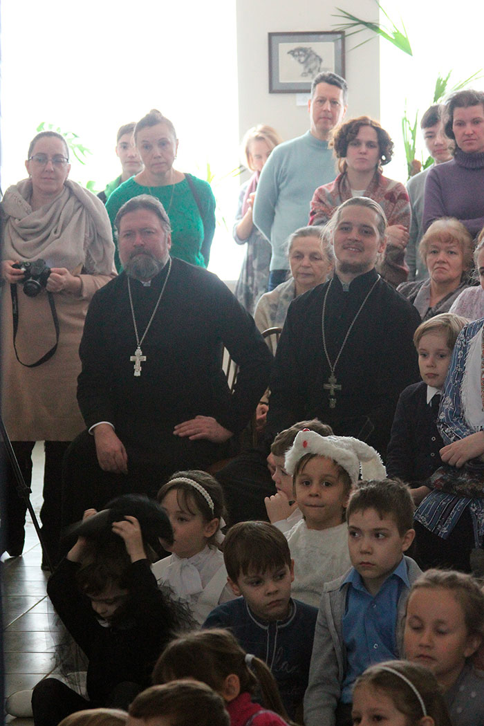 Открыл праздник настоятель храма священник Димитрий Поповский, который поздравил собравшихся с великим праздником Рождества Христова. Затем перед собравшимися выступили дети из младшей группы воскресной школы, которые под руководством Ксении Тарасюк подготовили два номера: «Вертеп» (театр теней) и «Варежка». После малышей всех порадовал рождественским настроением дедушка Мороз, а завершило праздник выступление группы прихожан с постановкой «Ночь после Рождества» под руководством Н.А.Андреевой.