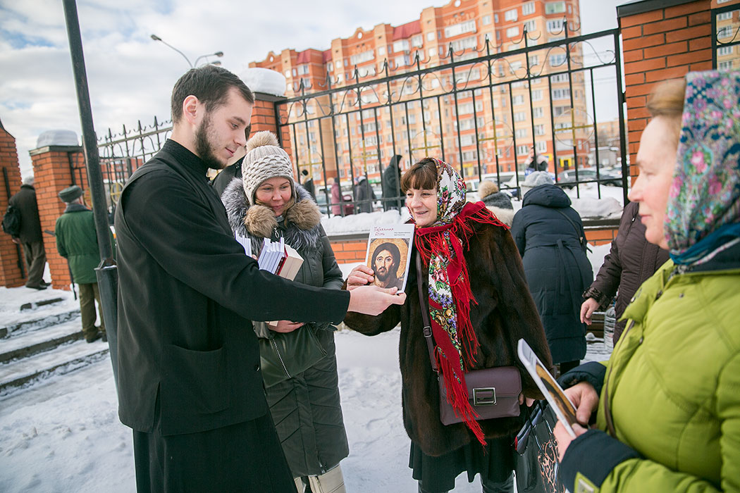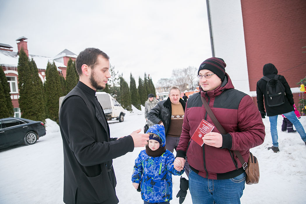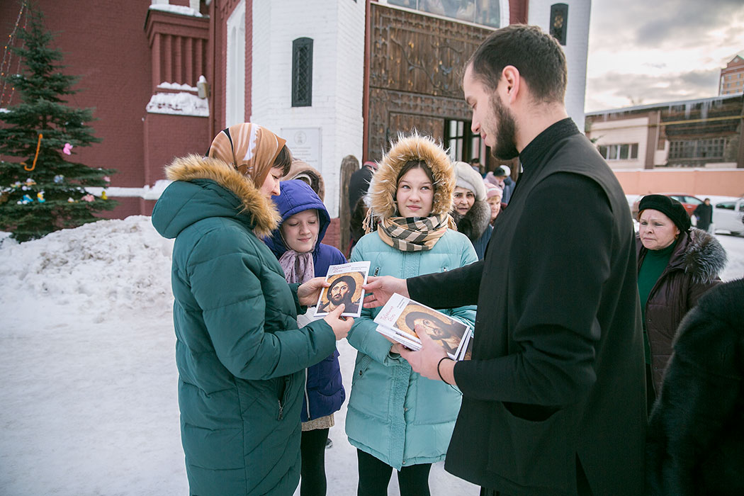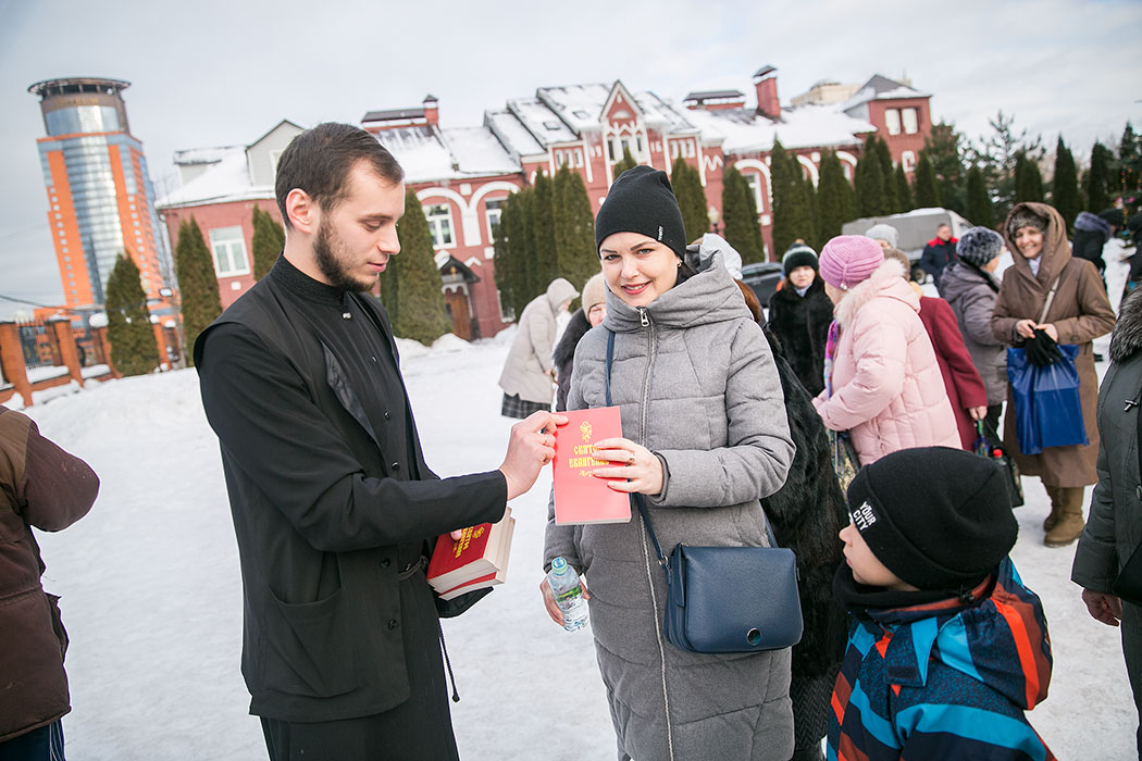 Приходящим за освящённой водой людям раздавали Евангелие, книгу «Азы православного христианства», а также миссионерские листовки с информацией о празднике Богоявления и освящённой воде.