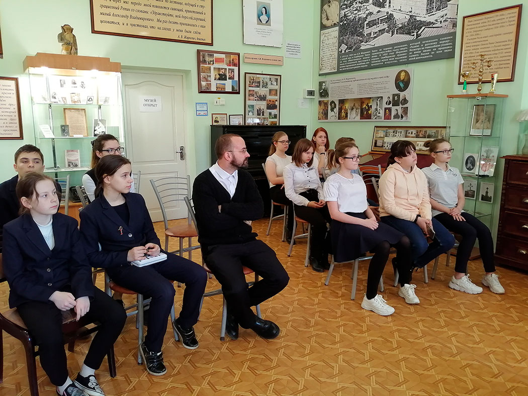 11 апреля в МУ «ЦКиД «Факел» г. Фрязино в литературно-исторической гостиной им. А.В. Жиркевича прошла беседа-лекция «Традиции дворянской семьи. Общение» для учеников 8-х классов МБОУ СОШ № 16 г. Щелково.