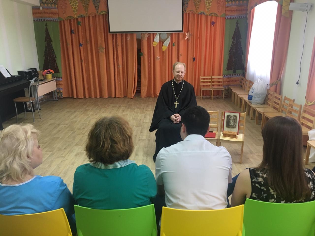 23 апреля в отделении «Мать и дитя» РЦ «Росинка» д. Медвежьи Озера состоялась беседа сотрудников центра с настоятелем храма блаженной Ксении Петербургской д. Медвежьи Озера священником Сергием Ковальчуком.