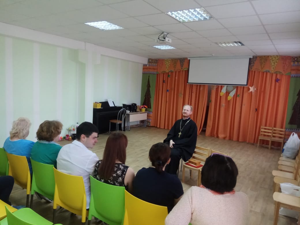 Отделение «Мать и дитя» РЦ «Росинка» уже не первый год тесно сотрудничает с храмом блаженной Ксении Петербургской. Отец Сергий регулярно проводит для родителей, специалистов и детей интересные просветительские беседы, касающиеся жития святых, традиций и историй православных праздников.