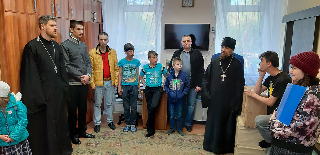 28 апреля прихожане и дети воскресной школы Сергиевского храма д. Алмазово вместе с его настоятелем священником Ильей Плешаковым и клириком священником Кириллом Серышевым поздравили воспитанников ГКОУ МО «Доверие» с праздником Пасхи.