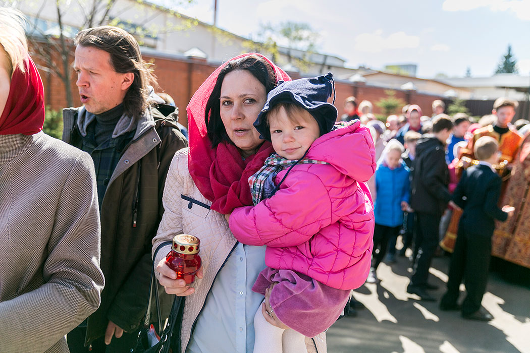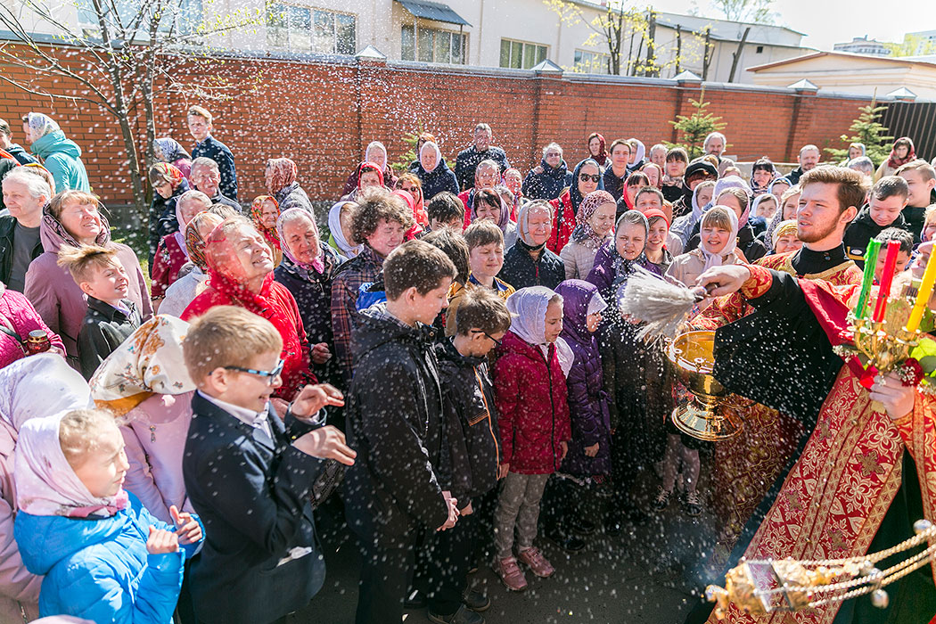 Затем отец Максим вместе с клириком собора священником Димитрием Медведевым совершил праздничный пасхальный крестный хор вокруг храма. В крестном ходе участвовали учащиеся православной гимназии «Ковчег» г. Щелково.