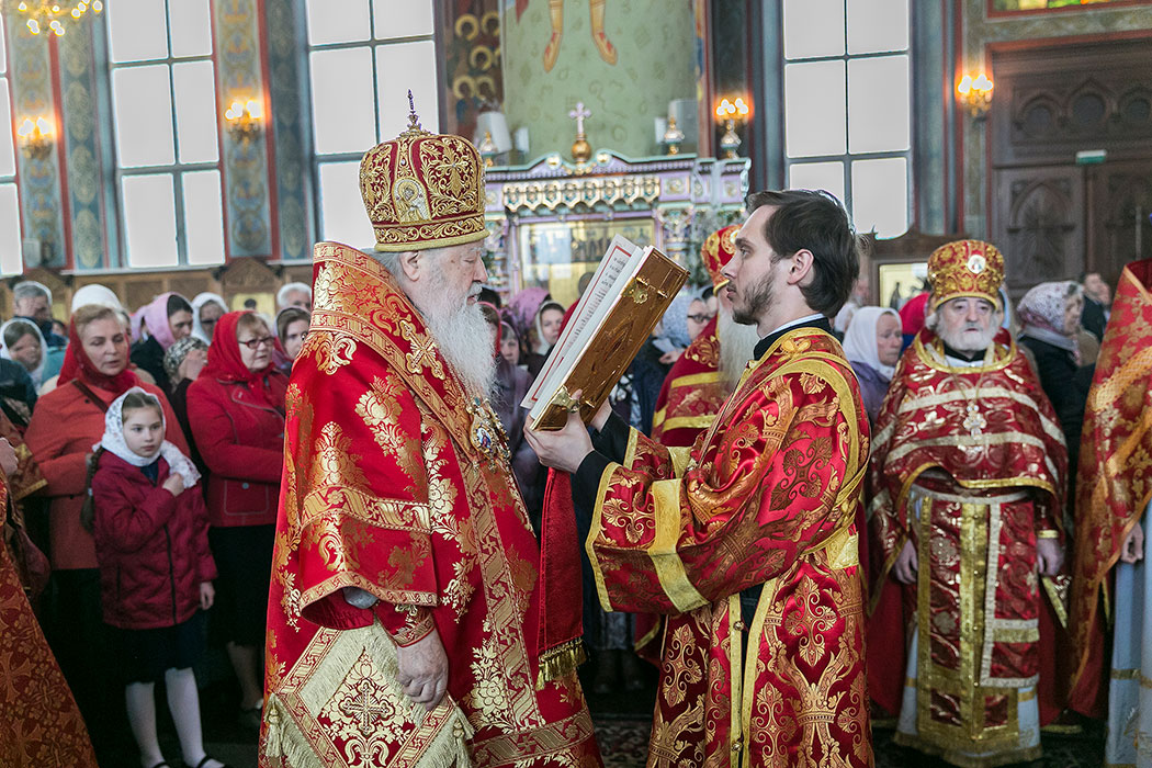 Я очень рад быть сегодня в этом храме и вместе с вами прославлять воскресшего Господа нашего Иисуса Христа. Священное Писание в подробностях донесло до нас и слова Его проповеди, и обстоятельства Его Воскресения, и благовестие святых апостолов. Сегодня в Евангелии читалось повествование о том, как Христос изгонял торгующих из храма (см.: Ин. 2:12-22). Иудеи спросили его: «Каким знамением докажешь Ты нам, что имеешь власть так поступать?» (Ин. 2:18) И Он ответил: «Разрушьте храм сей, и Я в три дня воздвигну его» (Ин. 2:19). И они, конечно, не поняли это иносказание и говорили: «…сей храм строился сорок шесть лет, и Ты в три дня воздвигнешь его?» (Ин. 2:20) И когда у Пилата совершался неправедный суд, то ученики вспомнили об этих словах. А о чем говорил Христос? Он говорил «о храме тела Своего» (Ин. 2:22). Его распяли, а Он в третий день воскрес. И сегодня мы вспоминаем учение Христово и радуемся, что им живут миллионы наших братьев и сестер. Христос оставил нам уверенность в том, что наша жизнь не заканчивается гробовой доской, поэтому мы в радости живем на этой земле, надеясь на вечную жизнь. Я вдохновлен этой совместной службой и прекрасным пением. Здесь настоящий кафедральный собор, и дай Бог, отец Андрей, и дальше Вам трудиться вместе с Вашими собратьями-священниками в проповеди слова Божия. Я горячо приветствую вас, братья, благодарю за ваше усердное, преданное служение Святой Христовой Церкви. Всем вам, возлюбленные, я желаю пасхальной радости не только в течении сорока дней праздника, а во все дни жизни вашей. Вдохновляйтесь верой в воскресшего Господа, верой в то, что мы наследники жизни вечной. Горячо и сердечно поздравляю всех вас с праздником Пасхи и призываю на вас Божие благословение. Христос воскресе!