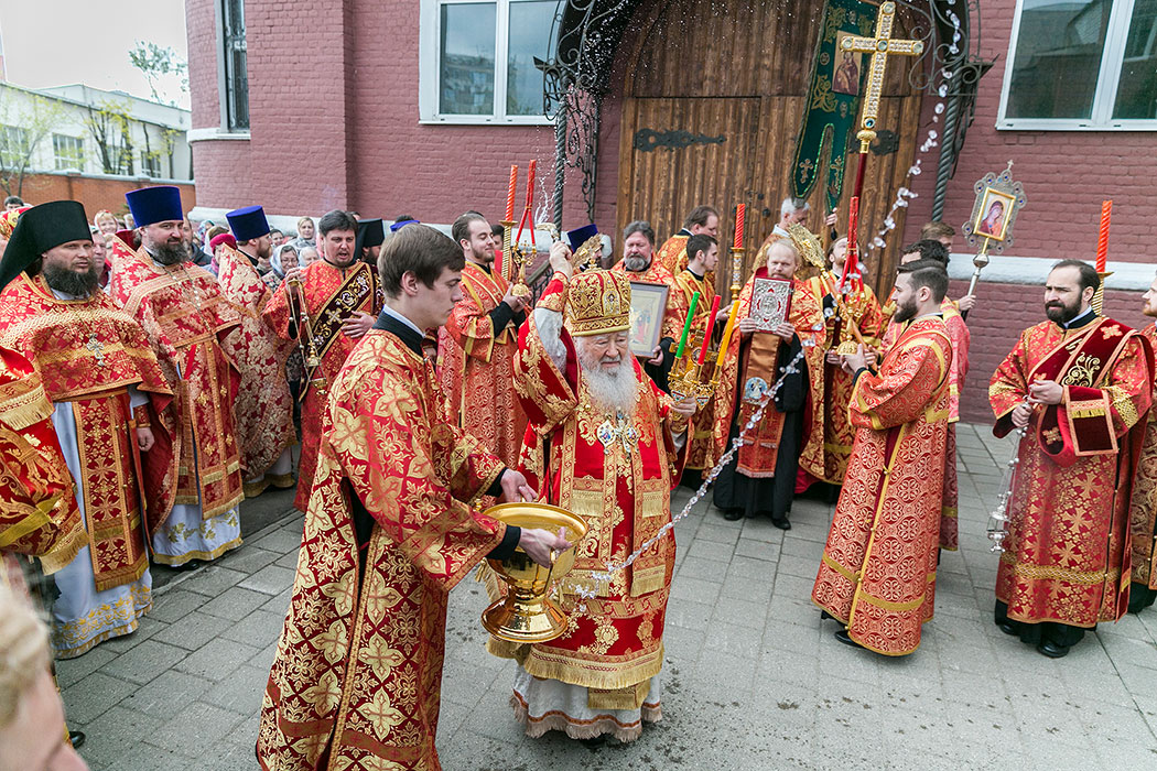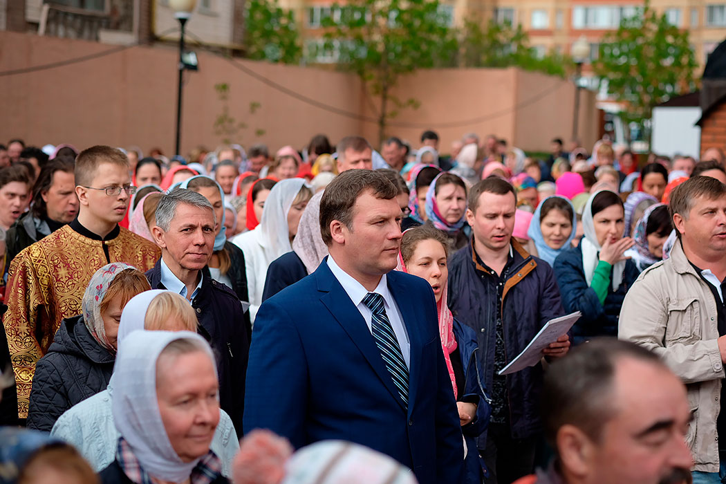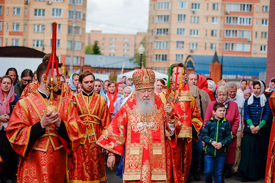 После заамвонной молитвы состоялся крестный ход, по окончании которого с приветственным словом от лица всех молящихся к митрополиту Ювеналию обратился благочинный Щелковского церковного округа протоиерей Андрей Ковальчук: