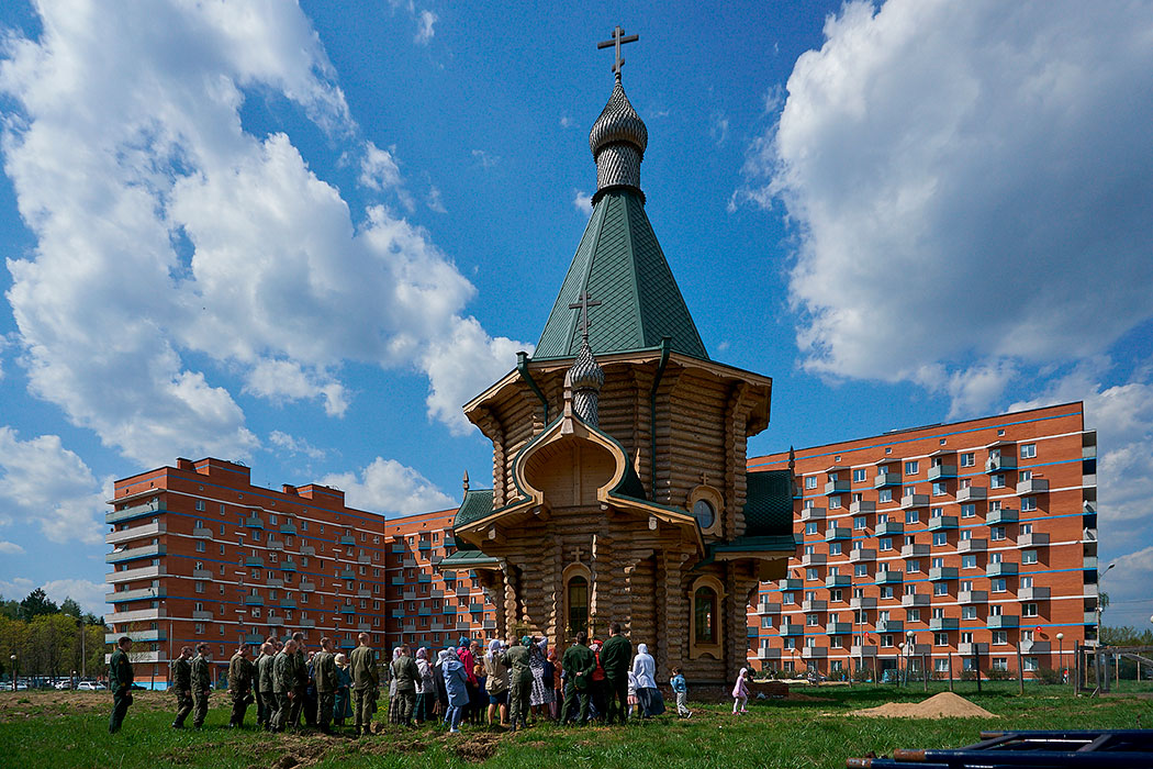 Храм на территории общежития части строится с 2013 года. Сегодня этот храм имеет статус приписного храма к Богородицерождественскому храму пос. Образцово. В день памяти великомученика Георгия литургию в Георгиевском храме совершил настоятель Богородицерождественского и Георгиевского храмов священник Димитрий Выдумкин. На литургии присутствовали прихожане из прилегающего к части городка, командование части и солдаты срочной службы. После Божественной литургии прошел традиционный для престольного праздника Крестный ход.