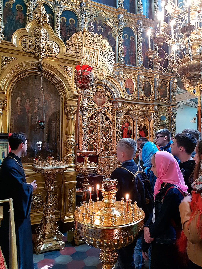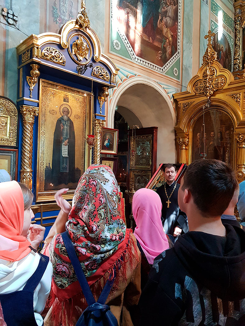 В завершение экскурсионного дня учащиеся отправились на чаепитие в трапезную храма, где общение со священником было продолжено уже на тему славянской азбуки.