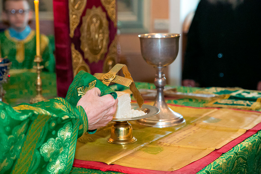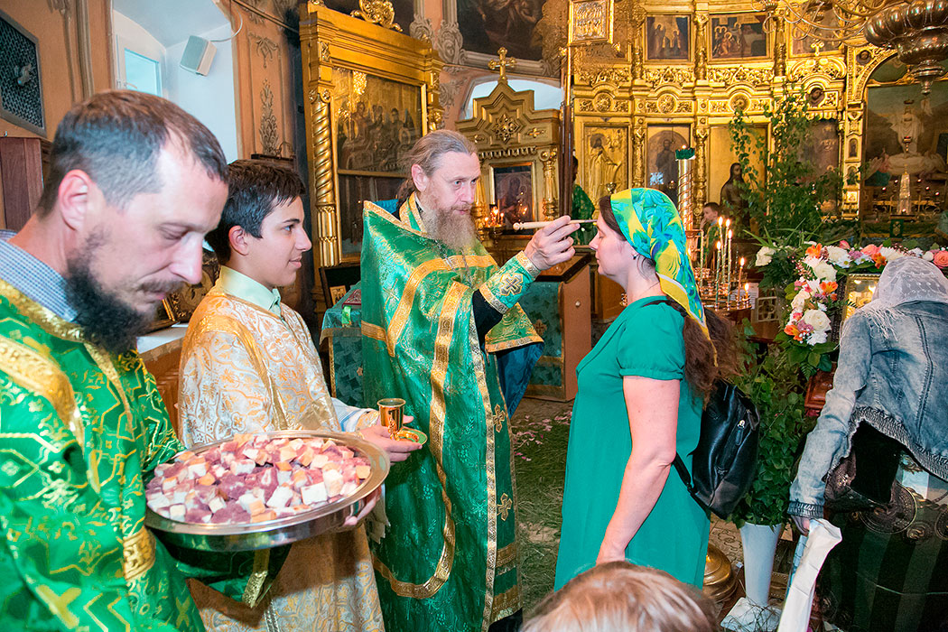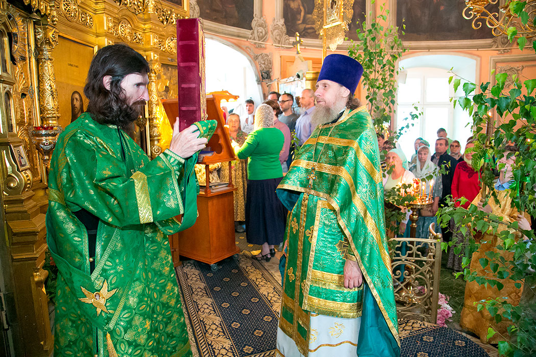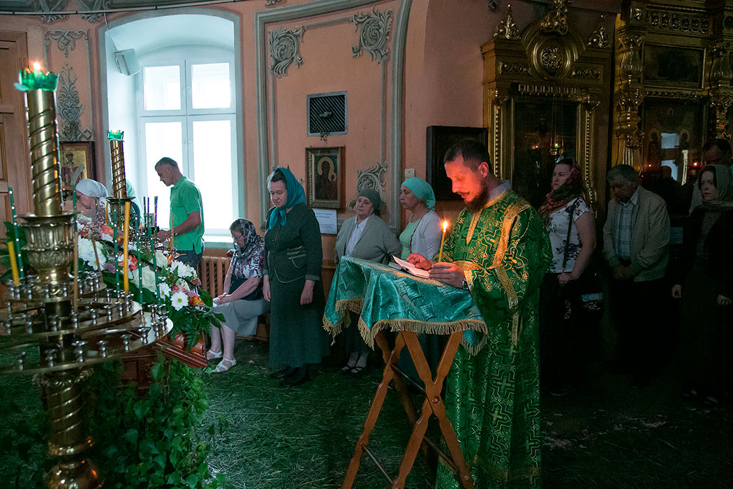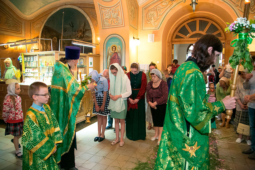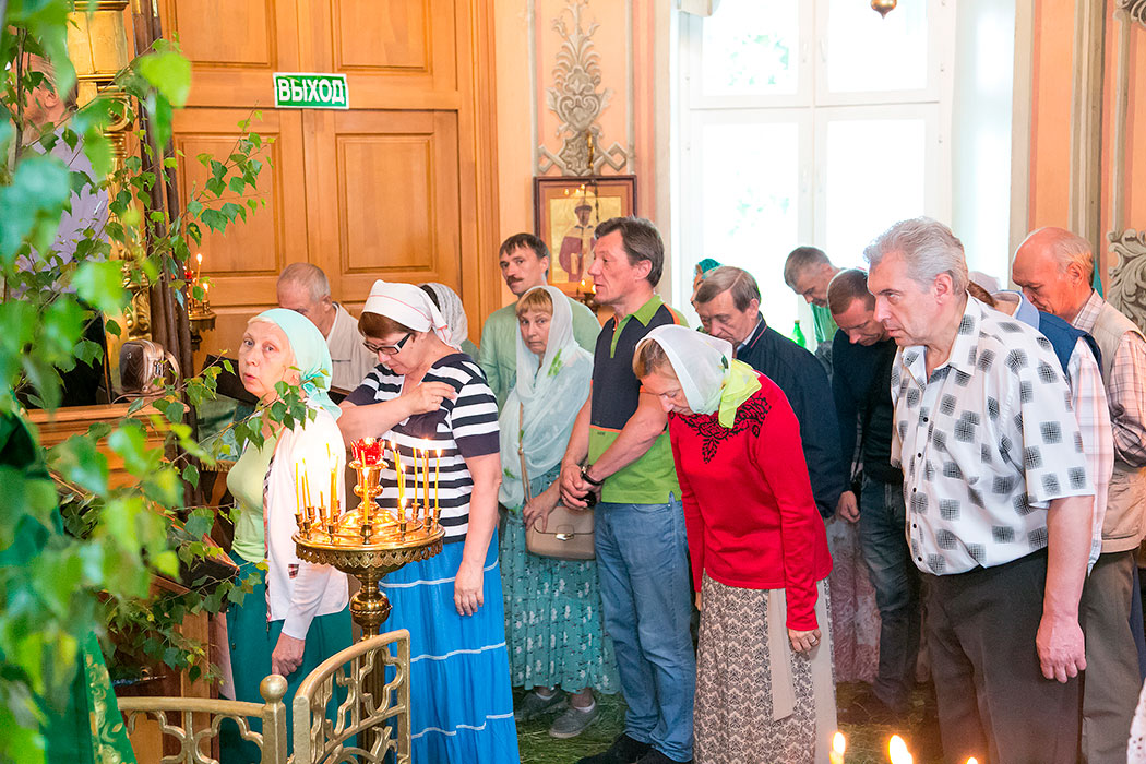 Божественную литургию и великую вечерню с чтением коленопреклонных молитв в этот день совершил настоятель храма протоиерей Алексий Никонов в сослужении клириков храма. А накануне, 15 июня, в храме было совершено Всенощное бдение.