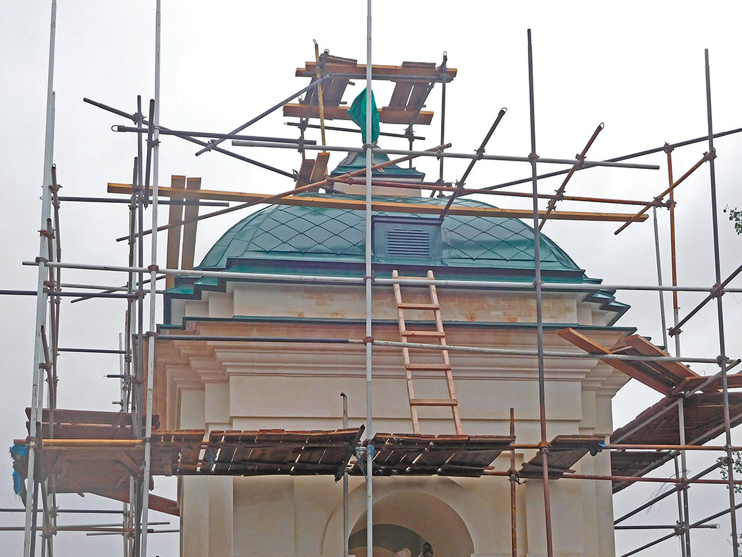 В данный период восстановительных работ практически идет к завершению реконструкция фасада храма и начинаются восстановительные работы интерьера.