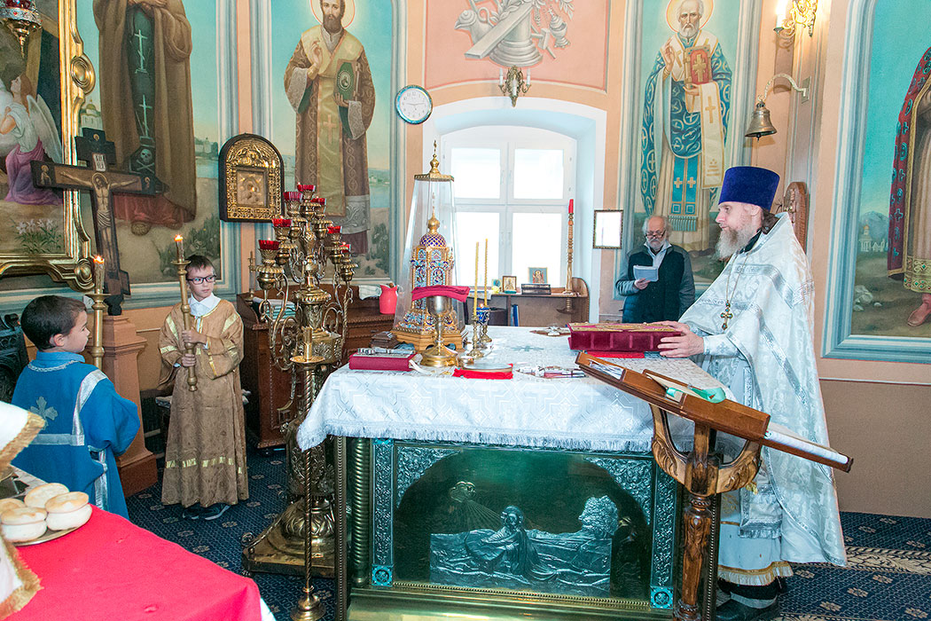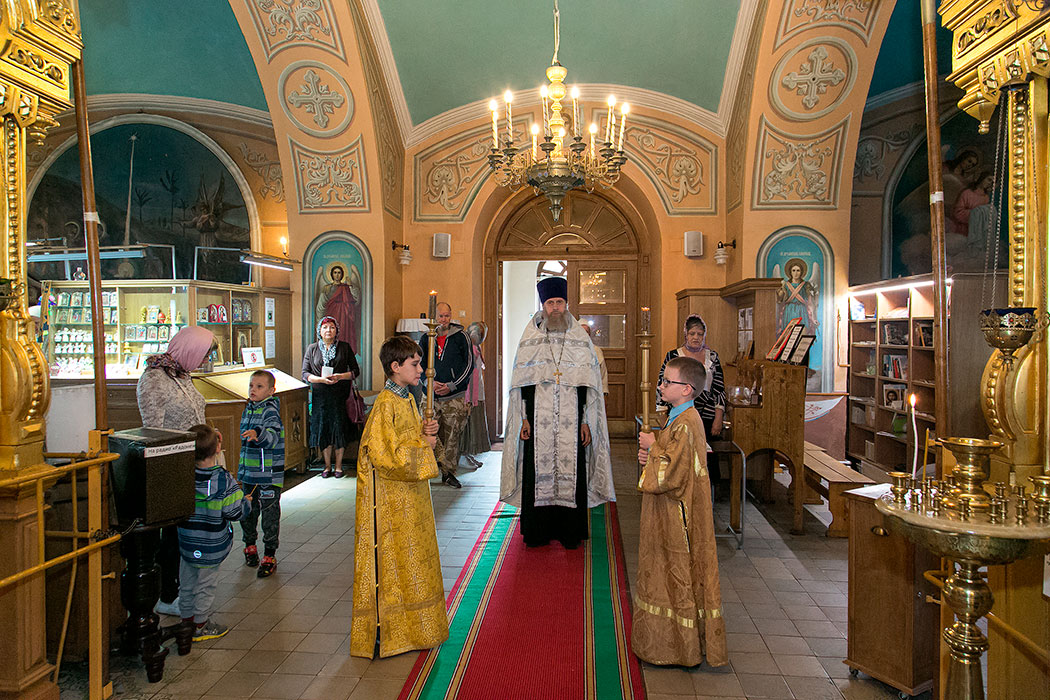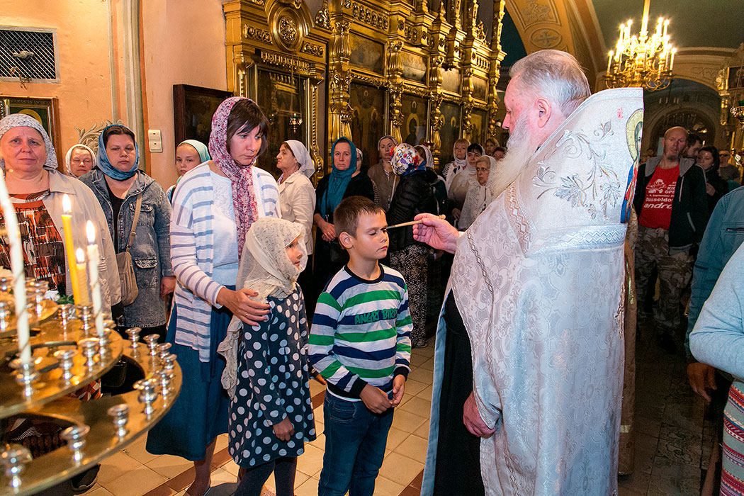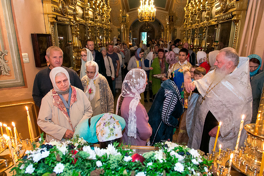Божественную литургию и чин освящения плодов в этот день совершил настоятель храма протоиерей Алексий Никонов. А накануне, 18 августа, в храме было совершено Всенощное бдение.