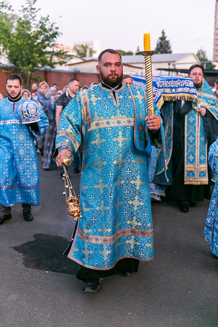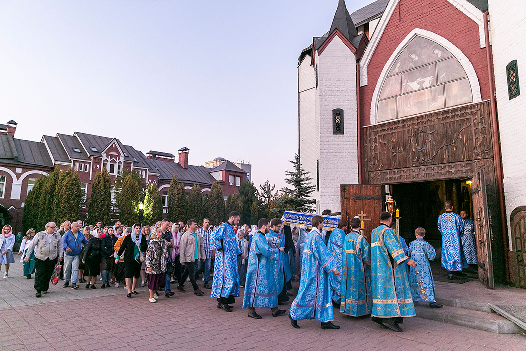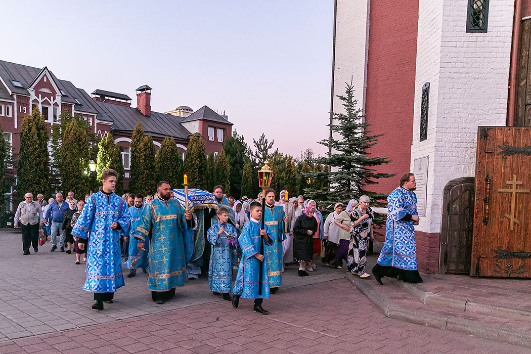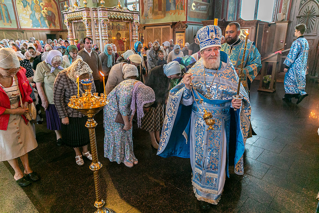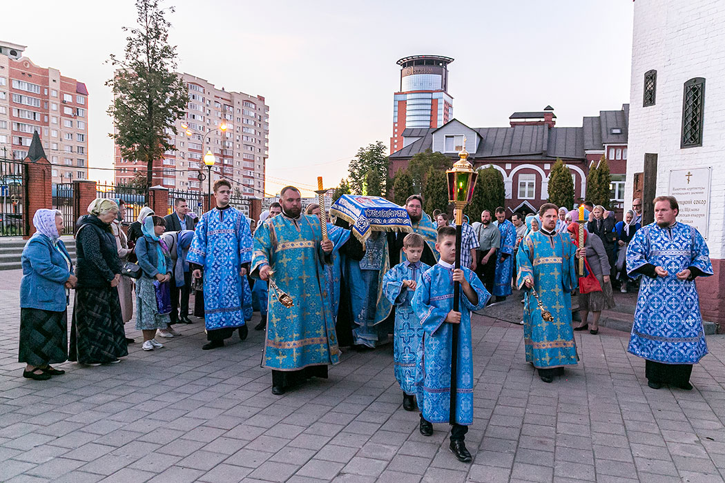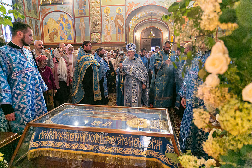 Для Троицкого собора г. Щелкова это престольный праздник, так как правый предел этого храма посвящен этому событию. Накануне, 27 августа, было совершено торжественное Всенощное бдение с чином Погребения Божией Матери. 28 августа, в самый день праздника, была совершена Божественная Литургия. Богослужение возглавил благочинный Щелковского церковного округа протоиерей Андрей Ковальчук. По окончании Литургии отец Андрей обратился к прихожанам со словами поздравления с престольным праздником.