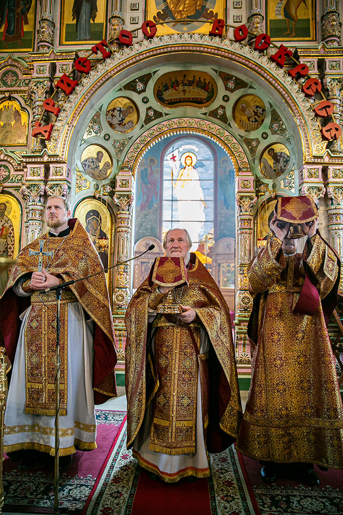 27 сентября, в самый день праздника, в Троицком соборе отец Андрей совершил Божественную литургию. За богослужением молились учащиеся православной гимназии «Ковчег», многие из которых в этот день причастились Святых Христовых Таинств.