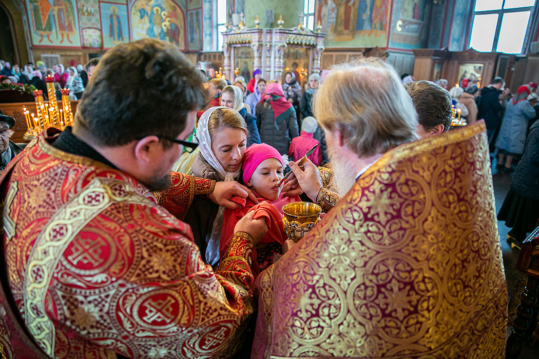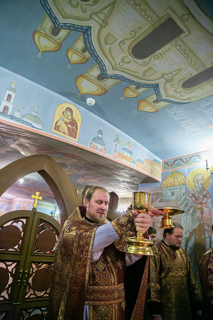 В самый день праздника в соборе было совершено две Божественный литургии – ранняя и поздняя. Раннюю Литургию совершил клирик собора священник Павел Чекалин в нижнем храме святых мучениц Веры, Надежды, Любови и матери их Софии. Позднюю в Троицком соборе совершил настоятель протоиерей Андрей Ковальчук в сослужении клириков собора.