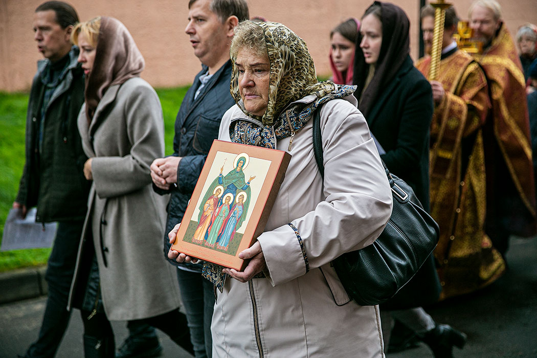 После поздней литургии состоялся праздничный крестный ход вокруг храма, в завершении которого отец Андрей обратился к прихожанам со словами поздравления с престольным праздником и поздравил многих именинниц, носящих имена святых мученик Веры, Надежны, Любови и матери их Софии.