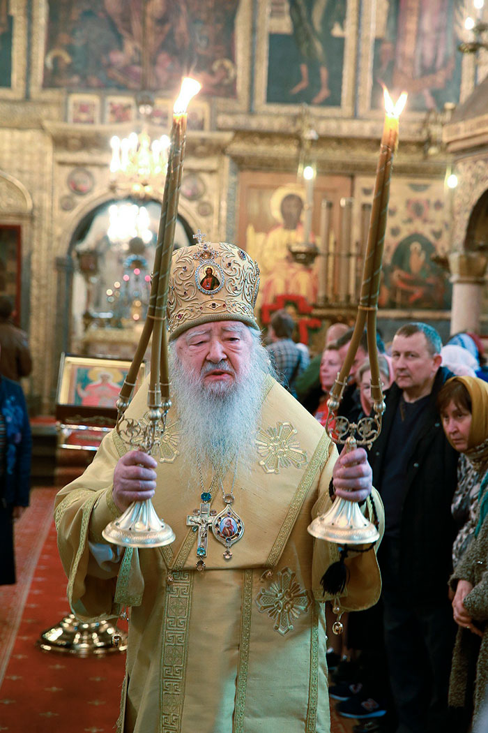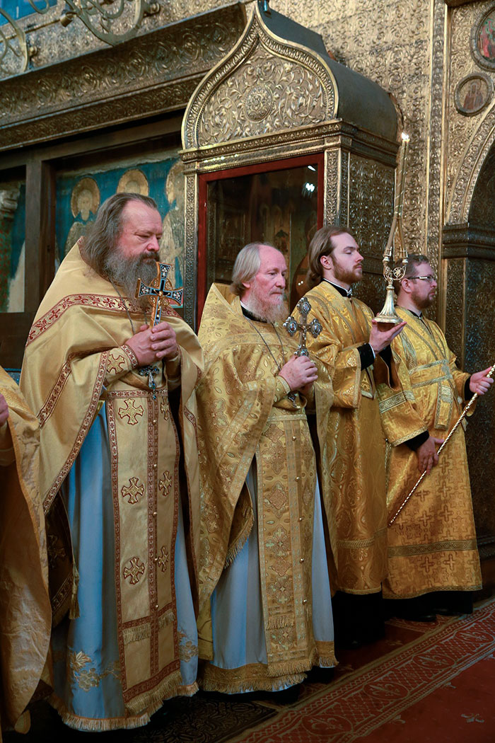 Его Высокопреосвященству сослужили епископ Серпуховской Роман, епископ Зарайский Константин, секретарь Патриарха Московского и всея Руси по городу Москве протопресвитер Владимир Диваков, благочинный Щелковского церковного округа протоиерей Андрей Ковальчук, духовенство города Москвы и Московской епархии.