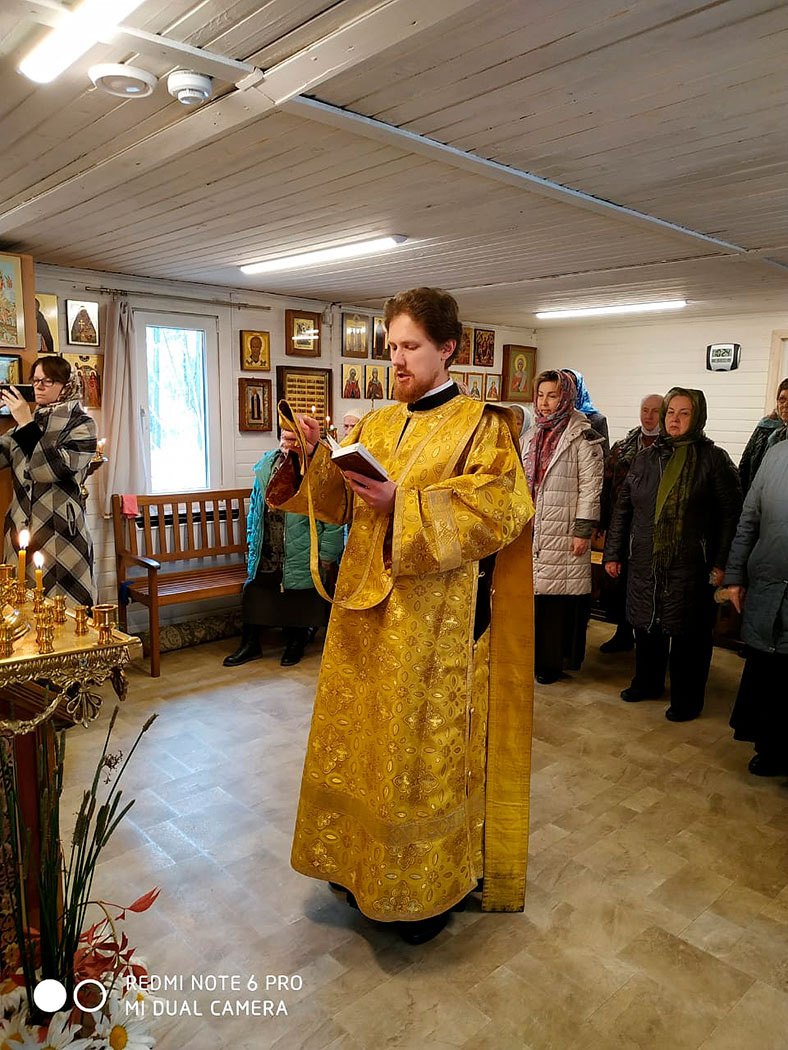 Ему сослужил настоятель храма священник Иоанн Лапкин и клирик Троицкого собора г. Щелкова диакон Кирилл Ковальчук. После Литургии был совершен молебен апостолу.