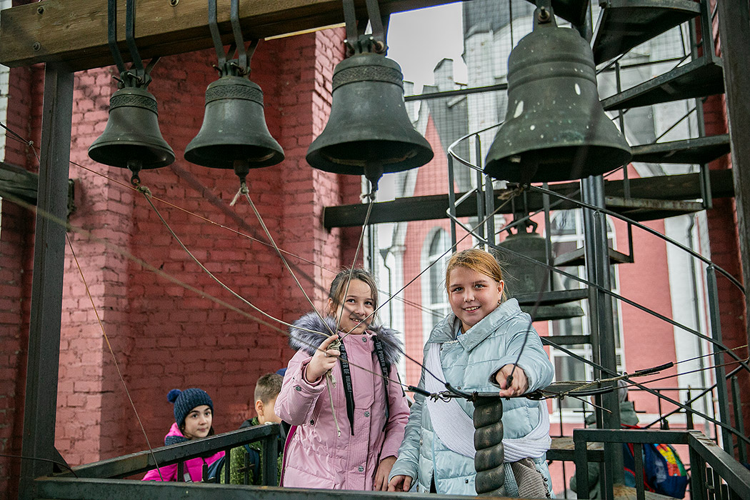 Клирик собора священник Максим Алифанов провел гостям экскурсию по храму, рассказал историю создания и восстановления Троицкого собора, дал детям духовные наставления. Гости осмотрели собор и нижний храм в честь мучениц Веры Надежды, Любови и матери их Софии, поднялись на колокольню и позвонили в колокола. После экскурсии всех детей ждали подарки.