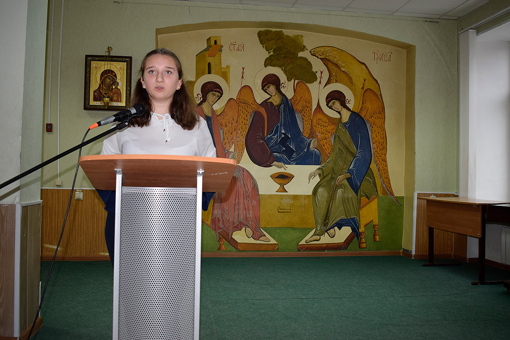 Юные исследователи из 5-11 классов поделились своими докладами о священниках, монахах и простых верующих в Бога солдатах, об их героических поступках, трудностях и лишениях в годы Великой Отечественной Войны. Ребята показали в своих работах как вера помогала этим героям выстоять в боях и преодолеть нечеловеческие испытания, как сложилась их жизнь после войны, какие выводы они сделали и какую пользу принесли своим потомкам не только в сражениях, но и в церковном служении.