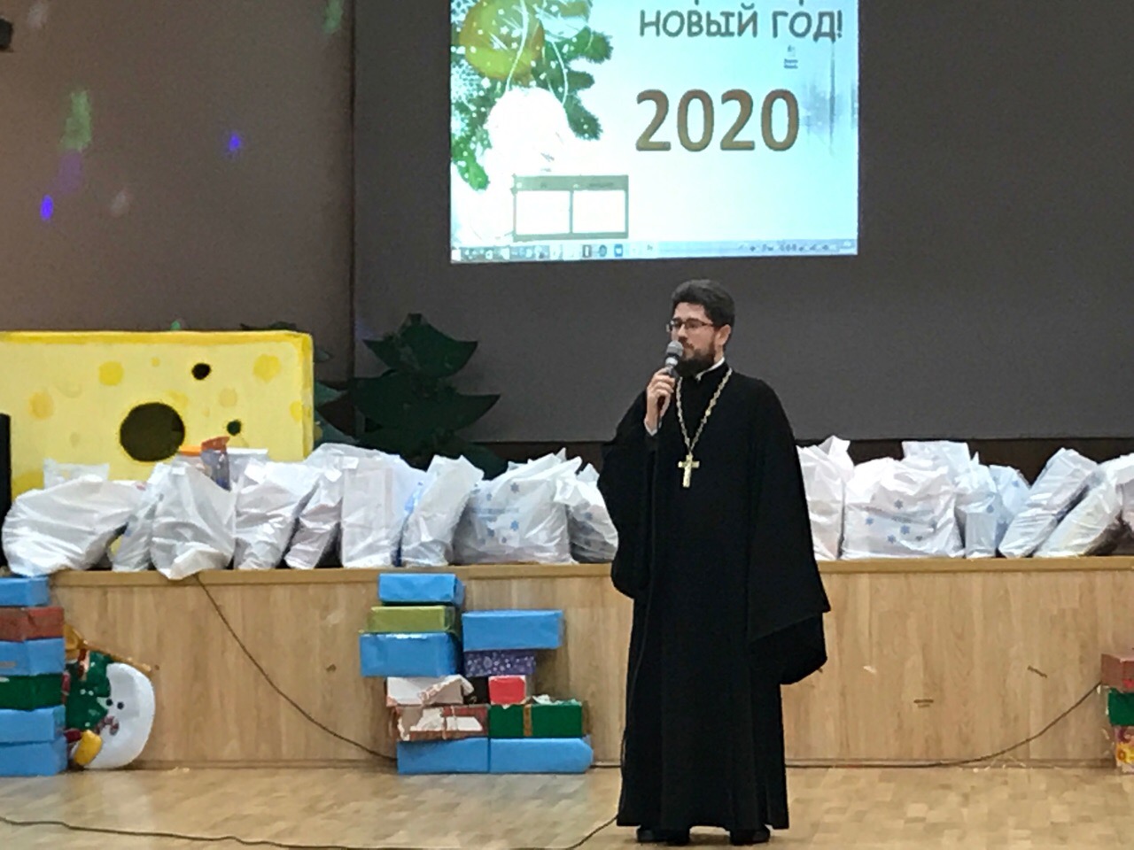 В школе №4 г. Фрязино прошел новогодний праздник для детей с ограниченными возможностями здоровья. В мероприятии участвовал настоятель Державного храма г. Фрязино священник Димитрий Третьяком. Батюшка выступил с приветственным словом, поздравил с наступающим Новым Годом и Рождеством Христовым.