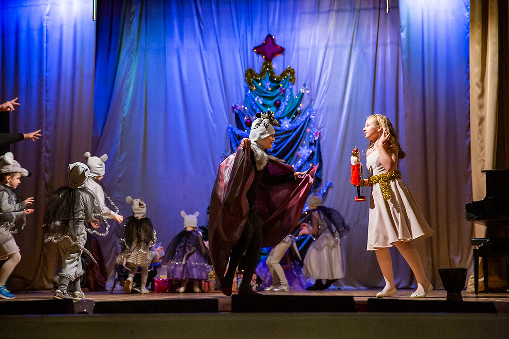 Со словами приветствия и поздравления обратился священник Владимир Тарасюк. Представление началось со спектакля «Щелкунчик», который поставила Ирина Николаевна Минц. Чудесные костюмы, грациозные движения, радость и улыбки напомнили зрителям волшебные мгновенья семейных рождественских праздников.
