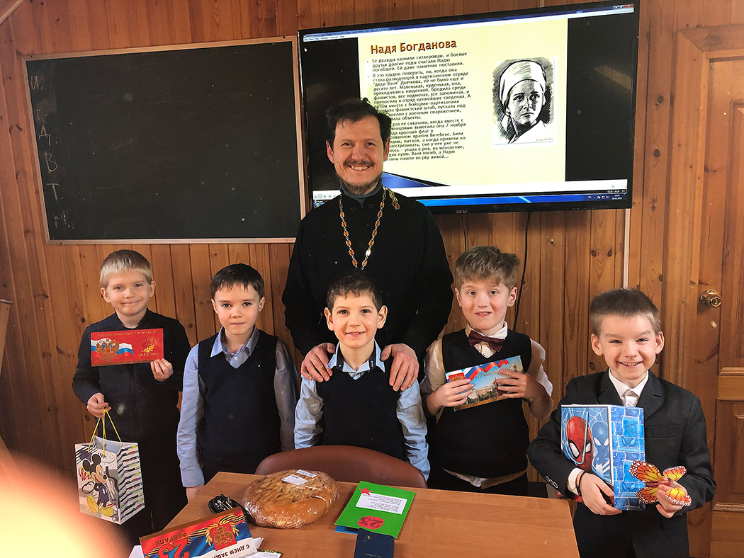 24 февраля в «Русской классической школе» при Богородицерождественском храме пос. Образцово, состоялся урок мужества, приуроченный к Дню защитника Отечества.