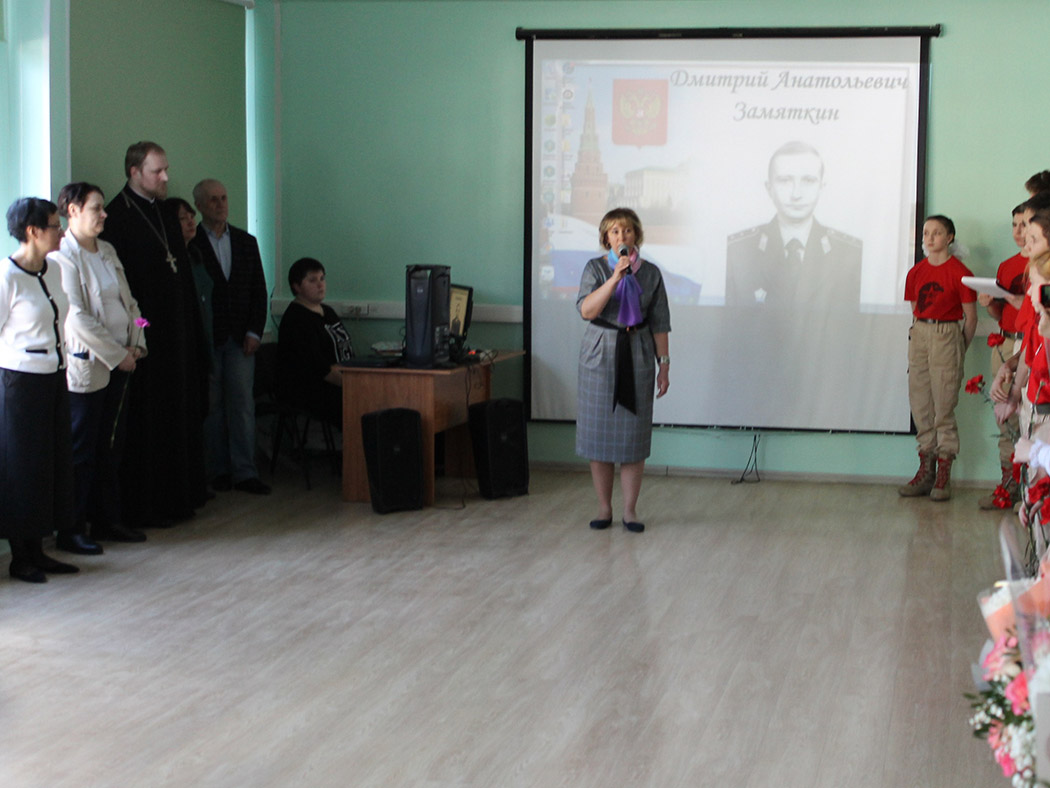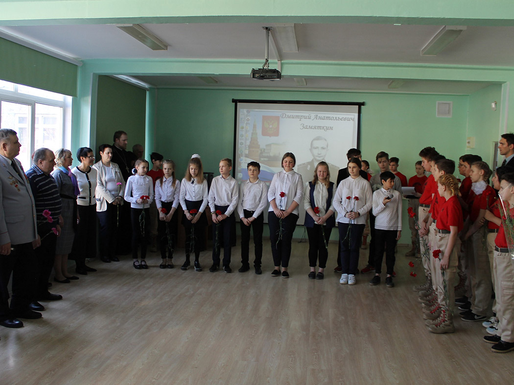 На линейке был представлен рассказ с презентацией о подвиге Замяткина Дмитрия Анатольевича. В конце мероприятия память о нем почтили минутой молчания и возложили цветы к мемориальной доске посвященной Дмитрию Замяткину.