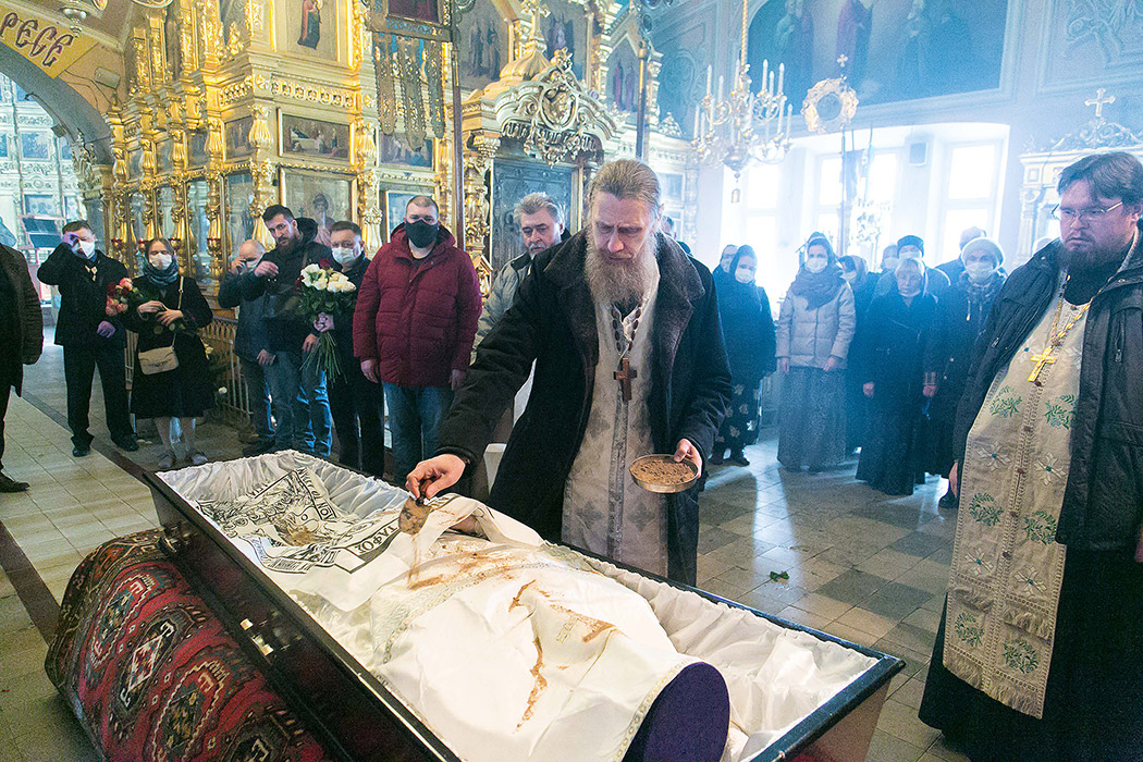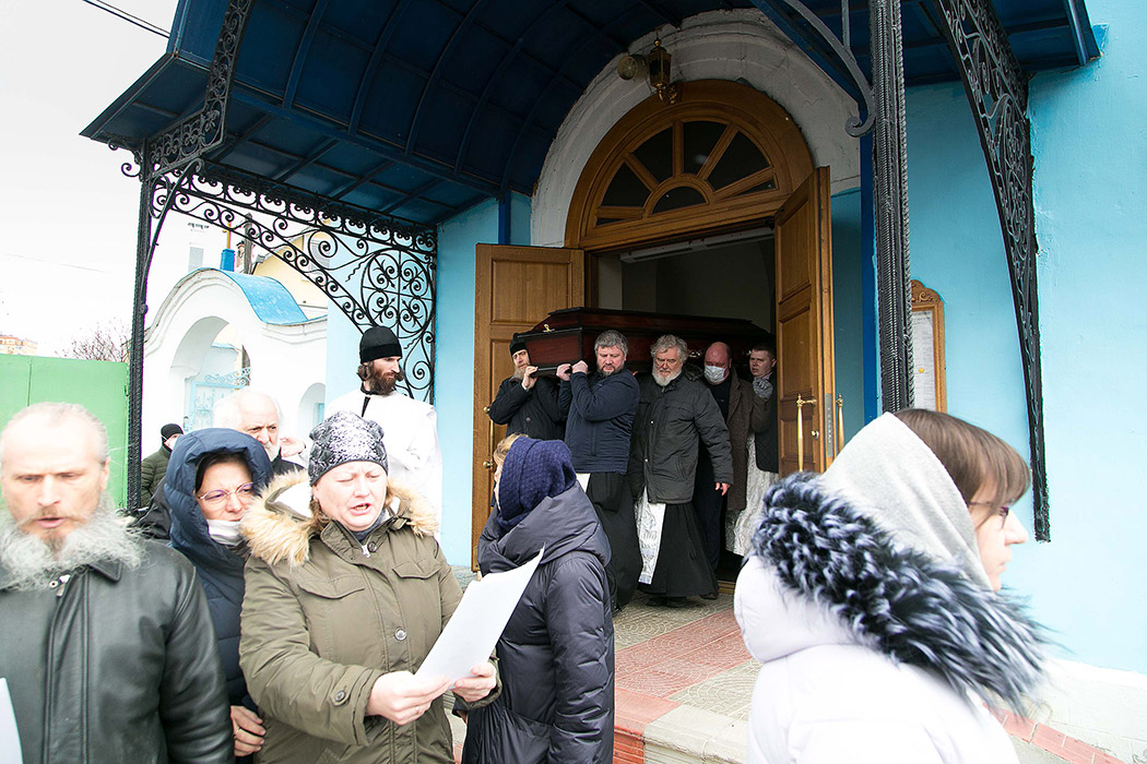 По окончании отпевания отец Алексий обратился ко всем молящимся с проповедью и зачитал слова соболезнования митрополита Ювеналия.
