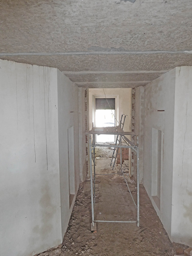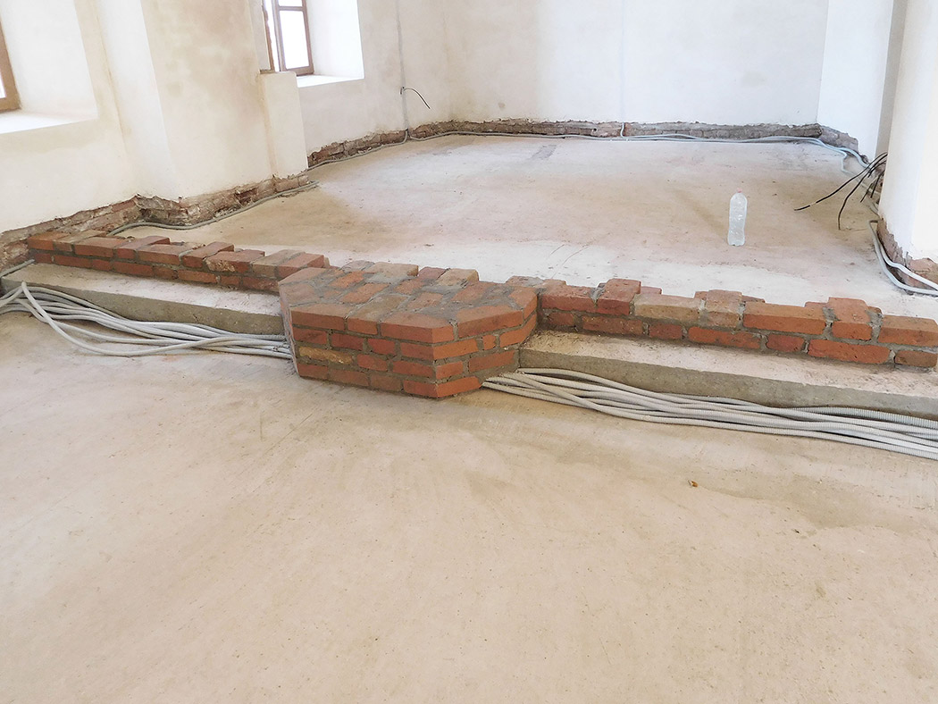 За прошедшие месяцы лета в восстанавливаемом храме были оштукатурены стены и своды интерьера храма, выровнен пол, утеплены своды храма и установлены пять металлических кованных входных дверей.