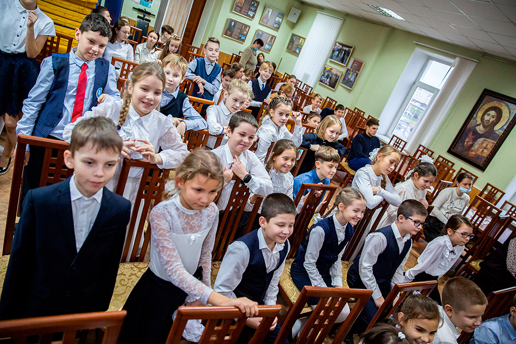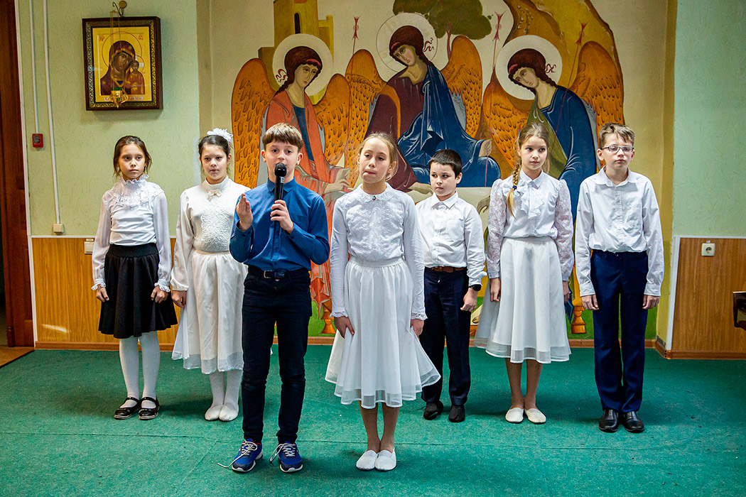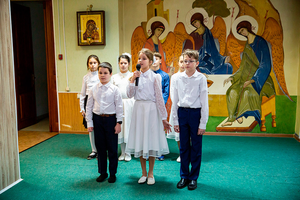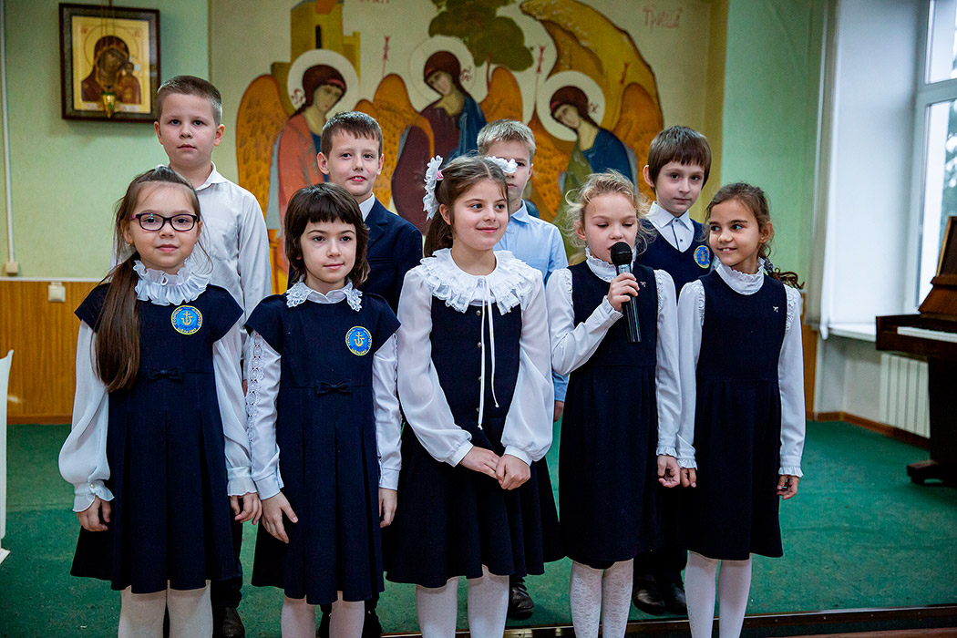 В конференц-зале праздничное мероприятие открыли полонезом обучающиеся 1 и 4 классов. В этот день прозвучало столько слов благодарности всем матерям, которые подарили жизнь своим детям и всегда молятся о них Пресвятой Богородице! Именно Матери Бога нашего Иисуса Христа была посвящена песня «Богородица» в исполнении самых младших гимназистов. А ребята 2 класса представили песню «Золотая мама». Учащиеся 3 класса прочитали стихотворения и с задором исполнили частушки и шуточную сценку. Сводный хор обучающихся начальных классов выступил с песней «Лучше нет на свете мамы». Ученики 5–6 классов преподнесли в подарок «Песню о маме». Каким весёлым и зажигательным был танец «Мамины помощники» гимназистов 3 класса! Очень трогательно прозвучала песня о самом дорогом человеке в исполнении учащейся 1 класса Александры Трушиной. «Мама – мой ангел» и «Мама и Родина очень похожи» – эти песни с особым трепетом спели ученицы 7 класса Елизавета Чернышева и Ксения Костина и 8 класса Софья Гармаш, Мария Кагитина и Татьяна Князева соответственно.