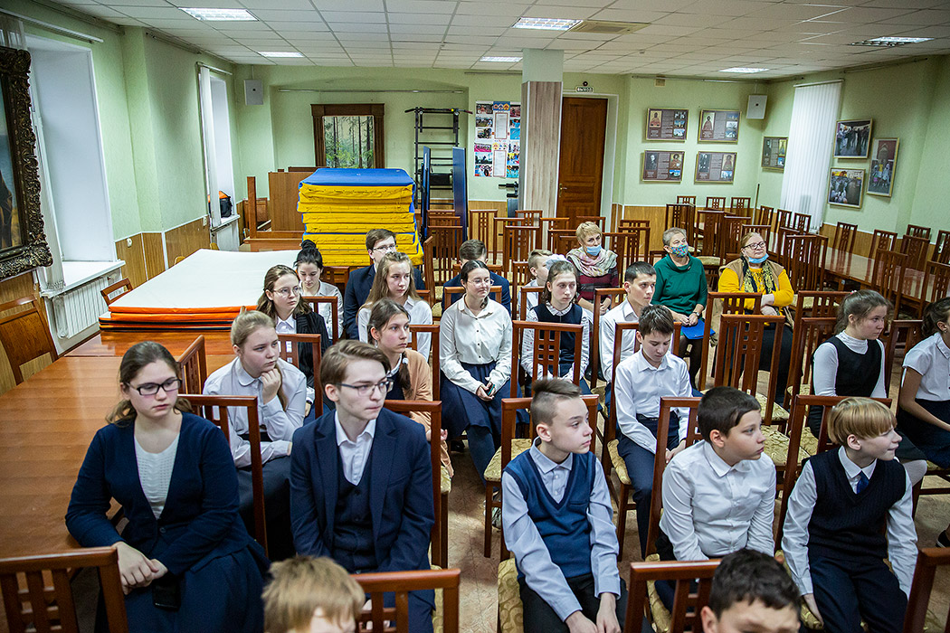 Гимназисты вместе с отцом Максимом рассмотрели время, близкое к периоду правления святого благоверного великого князя Александра Невского. Так, ребята узнали, что князю было явлено, что к нему на помощь спешили святые воины Борис и Глеб, жившие в XI веке. Ещё учащиеся с интересом прослушали рассказ о ратных подвигах защитников Отечества святого благоверного князя Довмонта Псковского, святого благоверного великого князя Дмитрия Донского, который перед Куликовской битвой обращался за духовной помощью к преподобному Сергию Радонежскому.