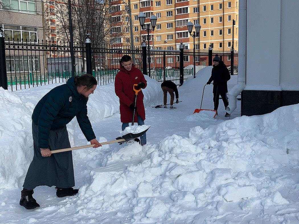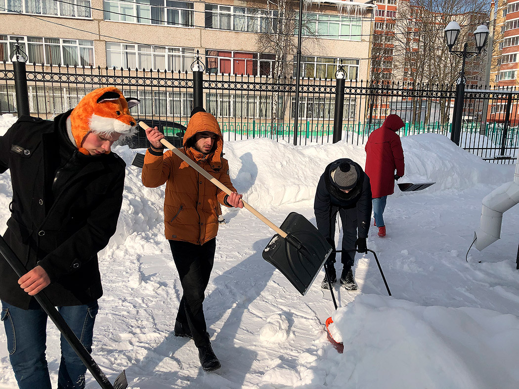 18 февраля учащиеся Щелковского колледжа СП № 3, 4 групп 3939 Сависько Денис, Крылов Дмитрий, 3020в Евдокимов Виталий, 3021в Смаилов Дмитрий, 3920в Кузнецов Павел приняли участие в расчистке снега на территории храма иконы Божьей Матери «Державная» г. Фрязино.