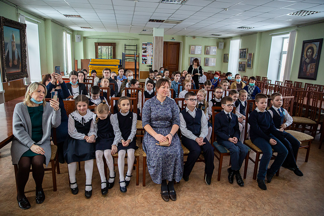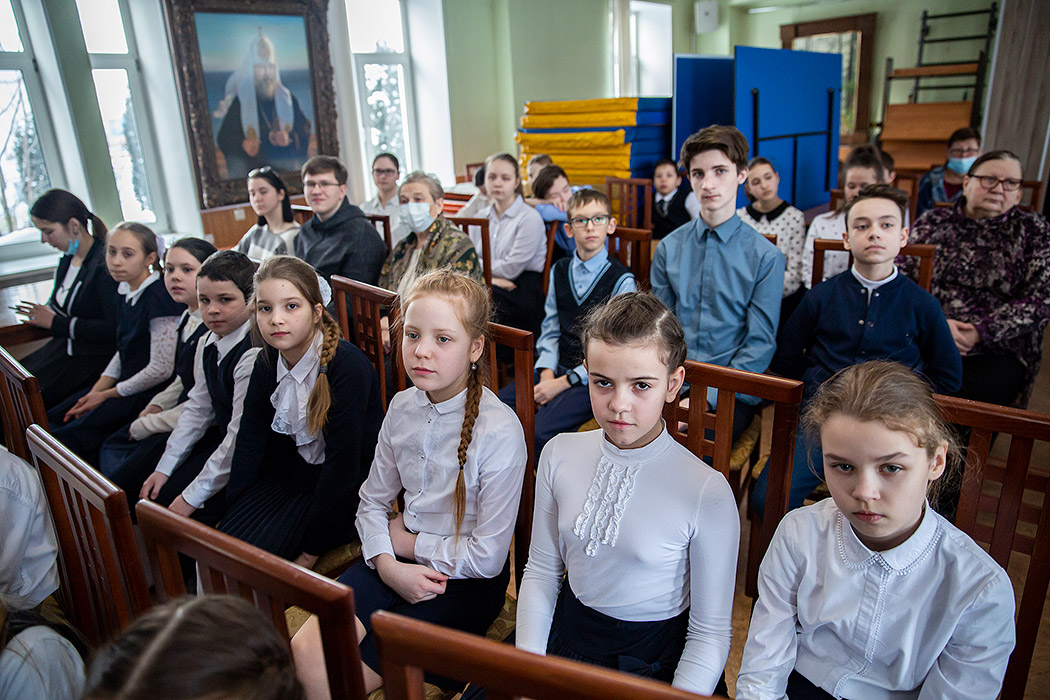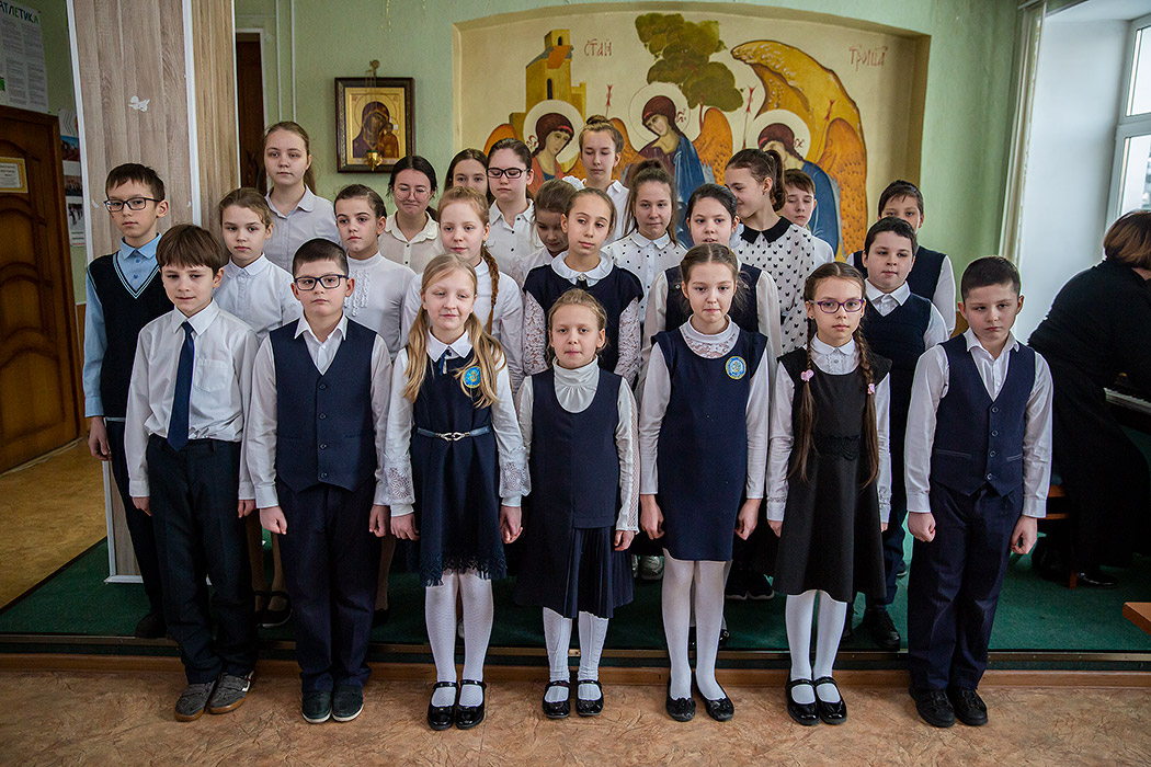 Выступают учащиеся 5-го класса Щелковского отделения Православной гимназии «Ковчег».