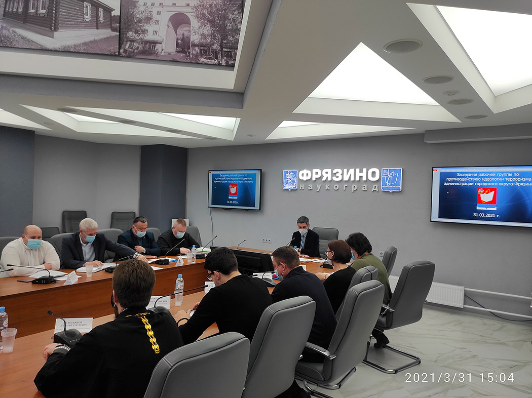31 марта настоятель Державного храма г. Фрязино священник Димитрий Третьяков принял участие в заседании рабочей группы по противодействию идеологии терроризма под председательством Первого заместителя главы администрации городского округа Фрязино Бощевана Н.В.
