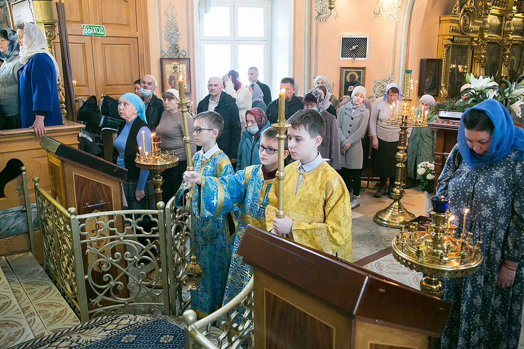 7 апреля, в Покровском храме г. Щелково, в праздник Благовещения Пресвятой Богородицы, настоятель храма протоиерей Алексий Никонов в сослужении клириков храма совершил вечерню и Божественную литургию святителя Иоанна Златоуста, а накануне 6 апреля вечером – Всенощное бдение.