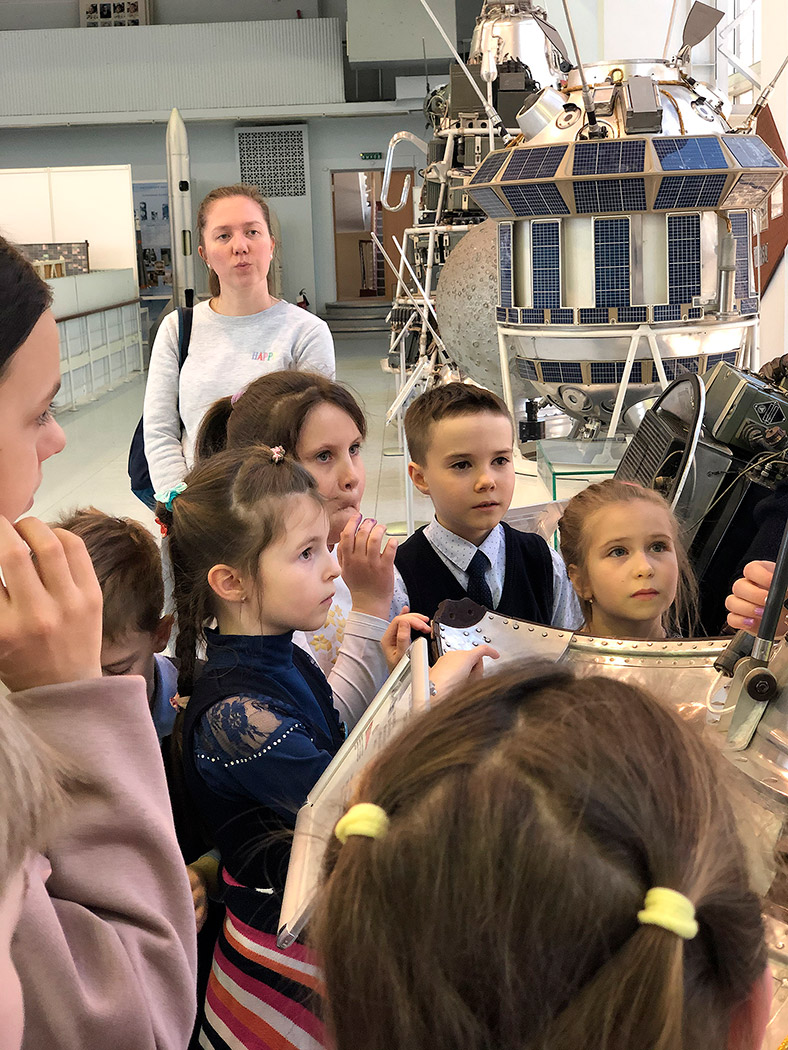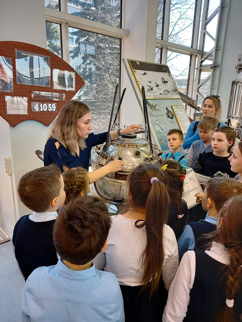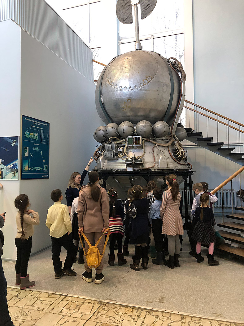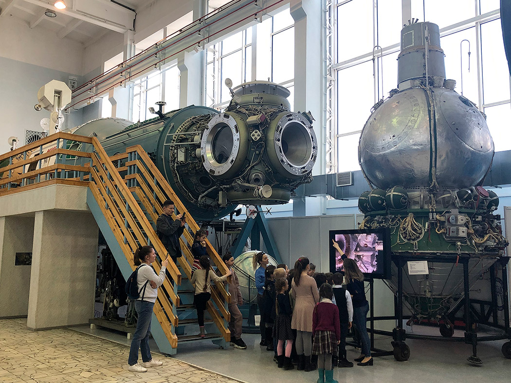 Ребята с интересом рассмотрели обстановку в рабочем кабинете выдающегося конструктора, увидели и прикоснулись к спускаемым аппаратам, многоместному аппарату «Восход-2», из которого впервые в мире космонавт А.А.Леонов осуществил выход в открытый космос, побывали внутри орбитальной станции "Мир", узнали много интересных фактов из жизни покорителей космоса и быта космонавтов. Особый интерес вызвали у школьников спутники, запущенные с первыми животными на борту – собаками Лайка, Белка и Стрелка.