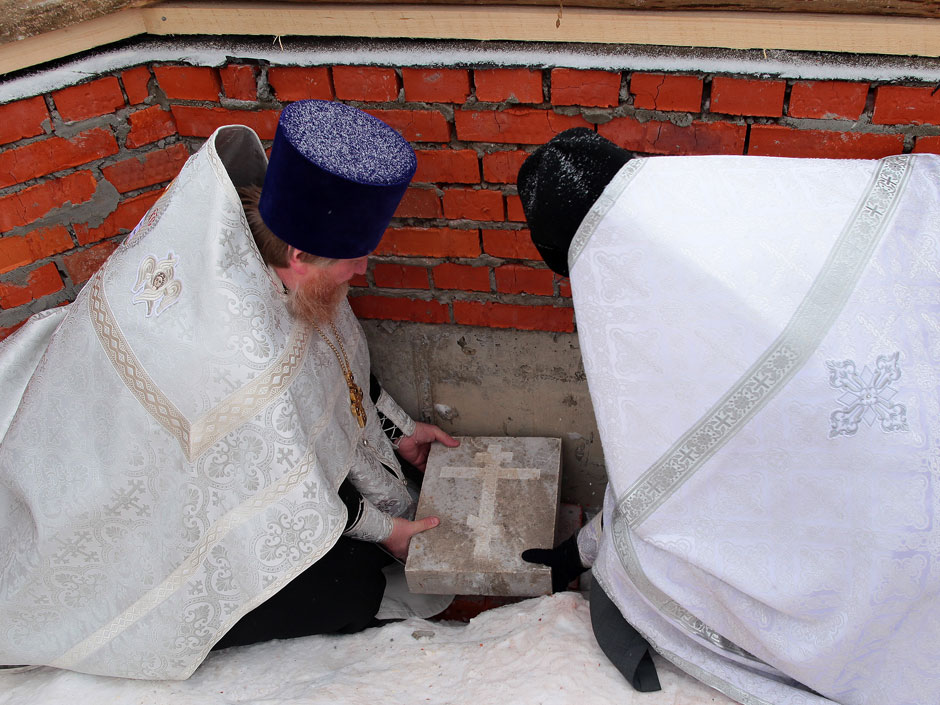 Ему сослужили настоятель Богородицерождественского храма с. Образцово, протоиерей Александр Семенов, ответственный по взаимодействию с Вооруженными силами и правоохранительными органами, настоятель Знаменского храма г. Щелково священник Олег Атласов, настоятель Никольского храма с. Оболдино священник Алексий Мареев, ответственный миссионерского отдела, клирик Троицкого собора г. Щелково священник Димитрий Третьяков, клирик Никольского храма г. Лосино-Петровский священник Димитрий Выдумкин. На освящении закладного камня пел хор Троицкого собора г. Щелково – регент Виталий Кисиль.