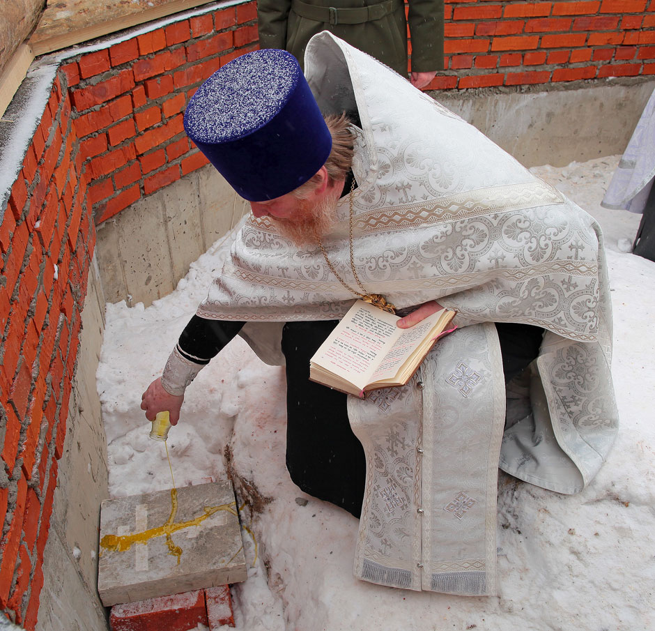 Чин закладки означает начало нового этапа в возведении храма. После трудоемкой работы по разработке проектно-сметной и конструкторской документации, консультаций с начальником Главного управления по работе с верующими военнослужащими Вооруженных Сил РФ, согласования с администрацией Щелковского района – на территории воинской части на сегодняшний день подготовлен фундамент под строительство деревянного шатрового храма и уже начинается его сборка. Архитектурным обликом, по желанию военнослужащих, он будет связан с традиционным русским храмовым и оборонным зодчеством. Строительные работы по возведению храма выполняет организация ООО «Ёлга» (генеральный директор В.Н. Шувалов).