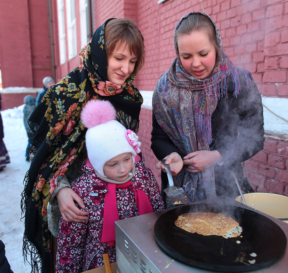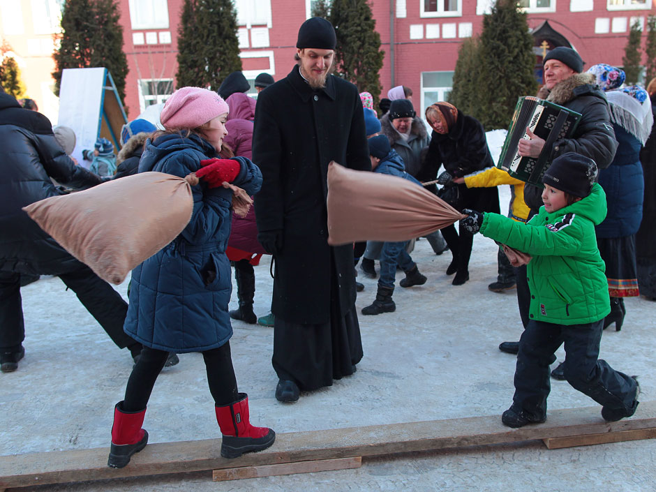 Вот такую атмосферу большой семьи и постаралась создать православная молодежь прихода. Кроме народных песен и хороводов, старинных русских забав, на улице проходили многочисленные конкурсы для детворы, за участие в которых все получали сладкие призы. Всех горожан ждало щедрое угощение – горячий чай и традиционные в этот день блины. Желающие также могли прямо здесь, на улице, испечь горячий блин.