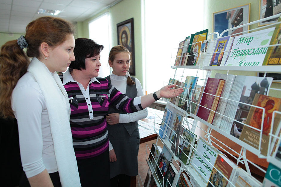 Сотрудники отдела духовной литературы городской библиотекой № 3 подготовили большую тематическую книжную выставку, вызвавшую особенный интерес школьников.