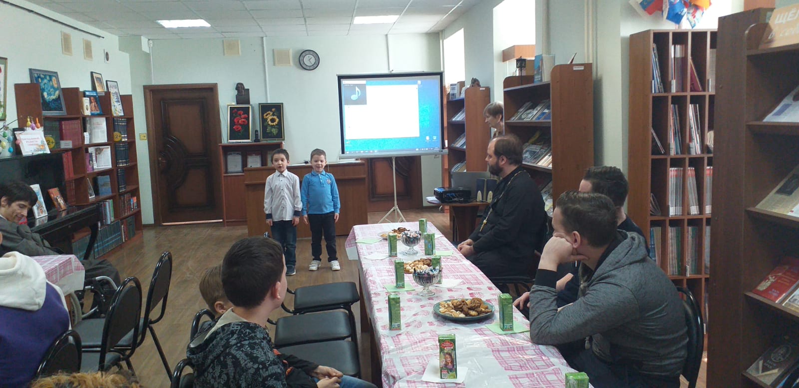 Сотрудники библиотеки подготовили интересные сообщения о главных атрибутах праздничного пасхального стола. С наступлением Пасхи для верующих людей заканчивается строгий 40-дневный пост. Конечно, каждая семья может похвастаться своими рецептами пасхальных угощений, но главными неизменно являются – кулич, творожная пасха и крашеные яйца. Дети и взрослые узнали, откуда пошла традиция подавать эти блюда на стол, и что же символизирует каждое, из привычных нам пасхальных угощений.