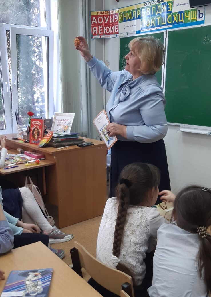 Сотрудница Православного духовно-просветительского центра «Благовест» при Библиотеке семейного чтения г. Щёлково Эльвира Юрьевна Варгасова рассказала ребятам о традициях и обычаях самого главного праздника всех христиан «Пасха».