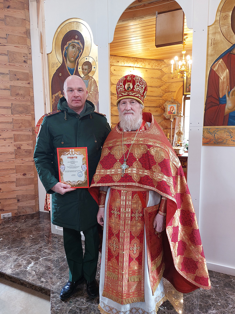 Отец Андрей поздравил прихожан с престольным праздником, а командира воинской части и его заместителя отметил благословенными грамотами Щёлковского благочиния.