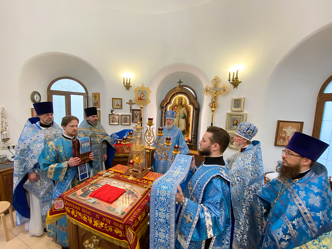 Его Преосвященству сослужили благочинный Щёлковского церковного округа протоиерей Андрей Ковальчук, настоятель храма иконы Божией Матери «Неупиваемая Чаша» посёлка Литвиново священник Алексий Кукушкин, эконом Балашихинского епархиального управления, настоятель Александро-Невского храма города Балашихи протоиерей Александр Ивлев, настоятель Державного храма города Фрязино священник Дмитрий Третьяков и настоятель храма Боголюбской иконы Божией Матери деревни Мишнево иеромонах Никон (Сайфулин).