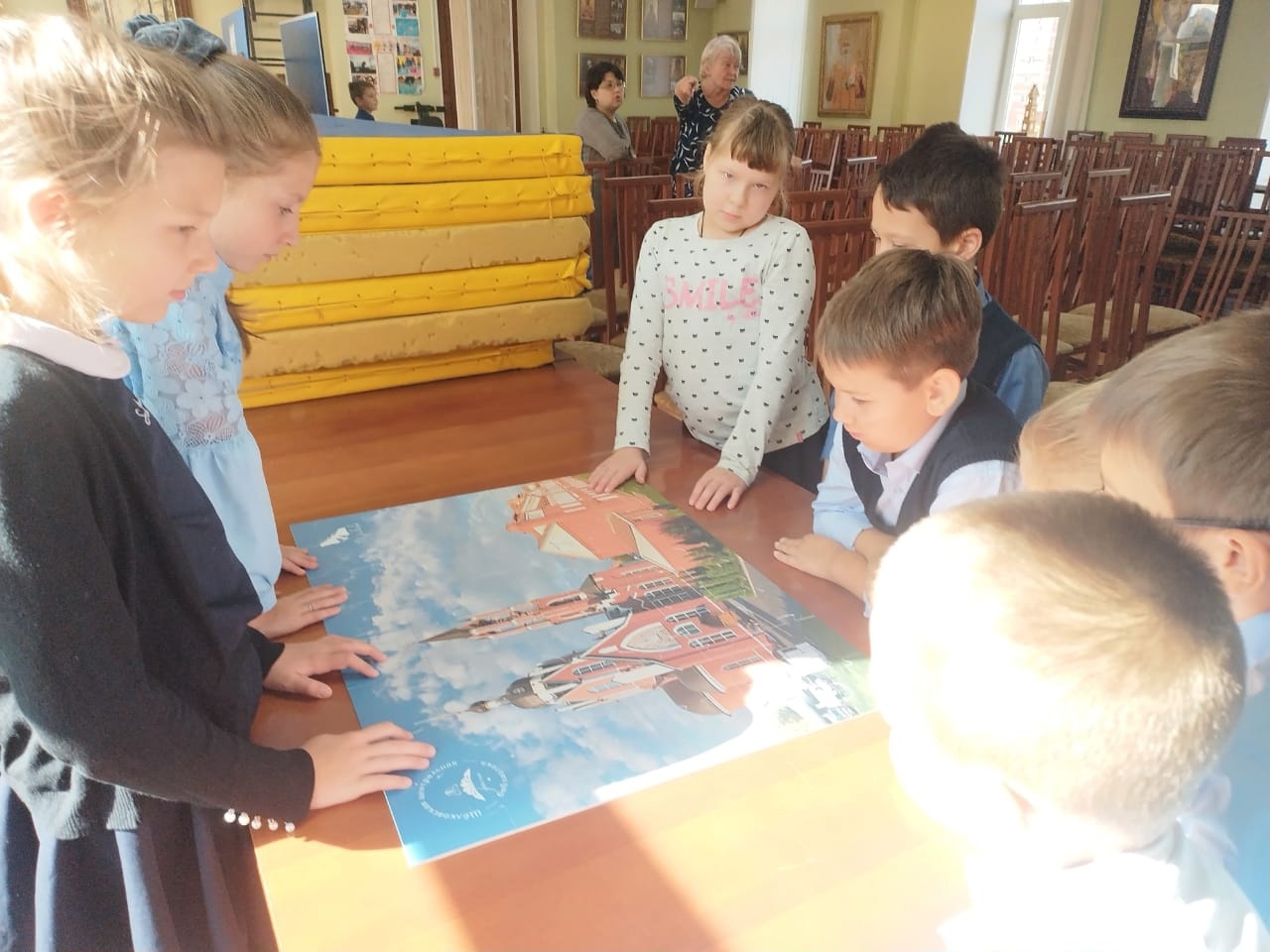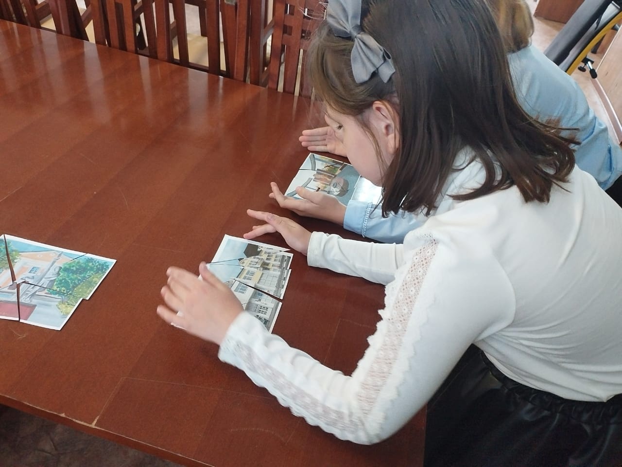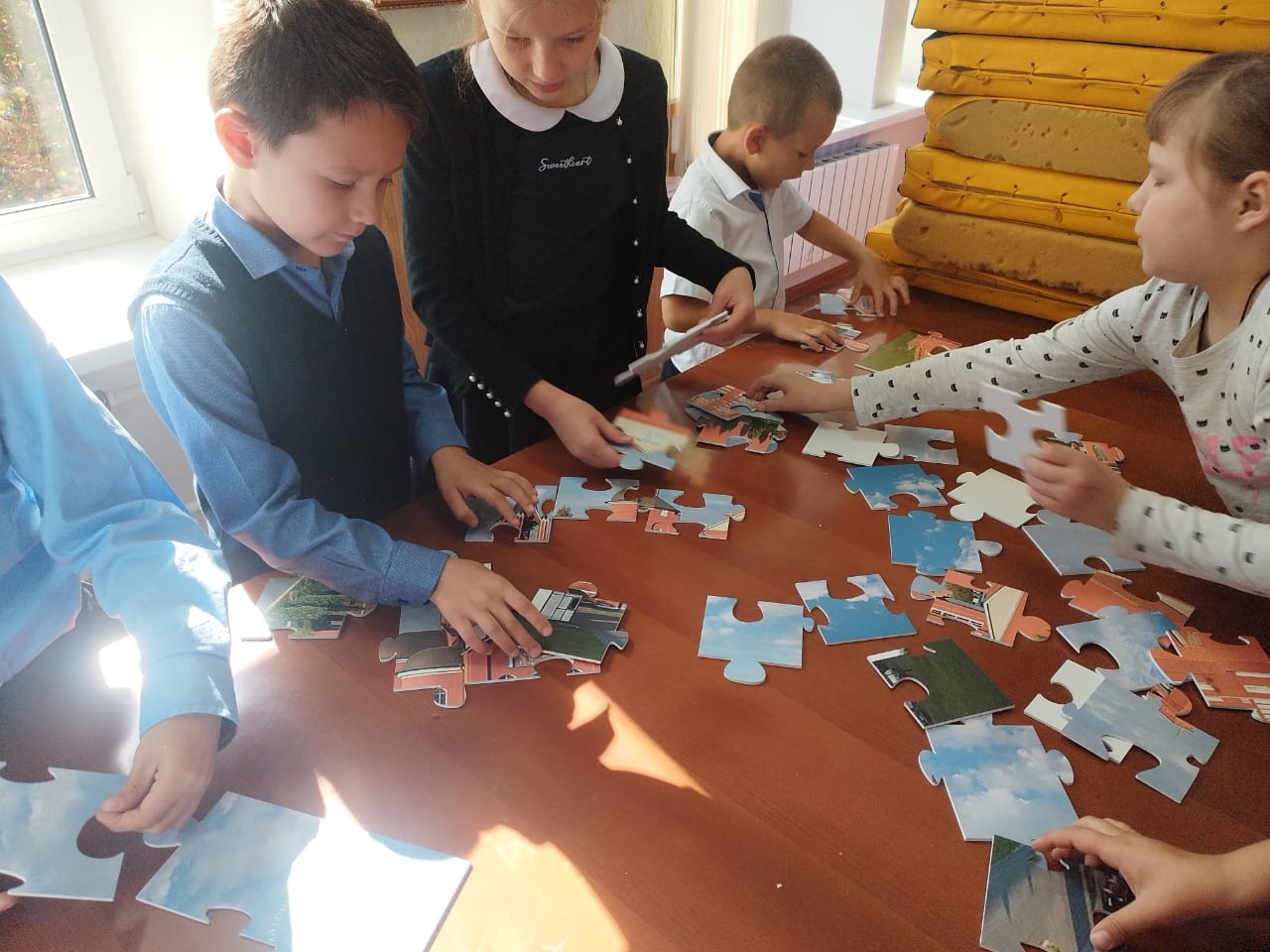 Ребята начальной школы увлеченно собирали пазлы «Мой город».