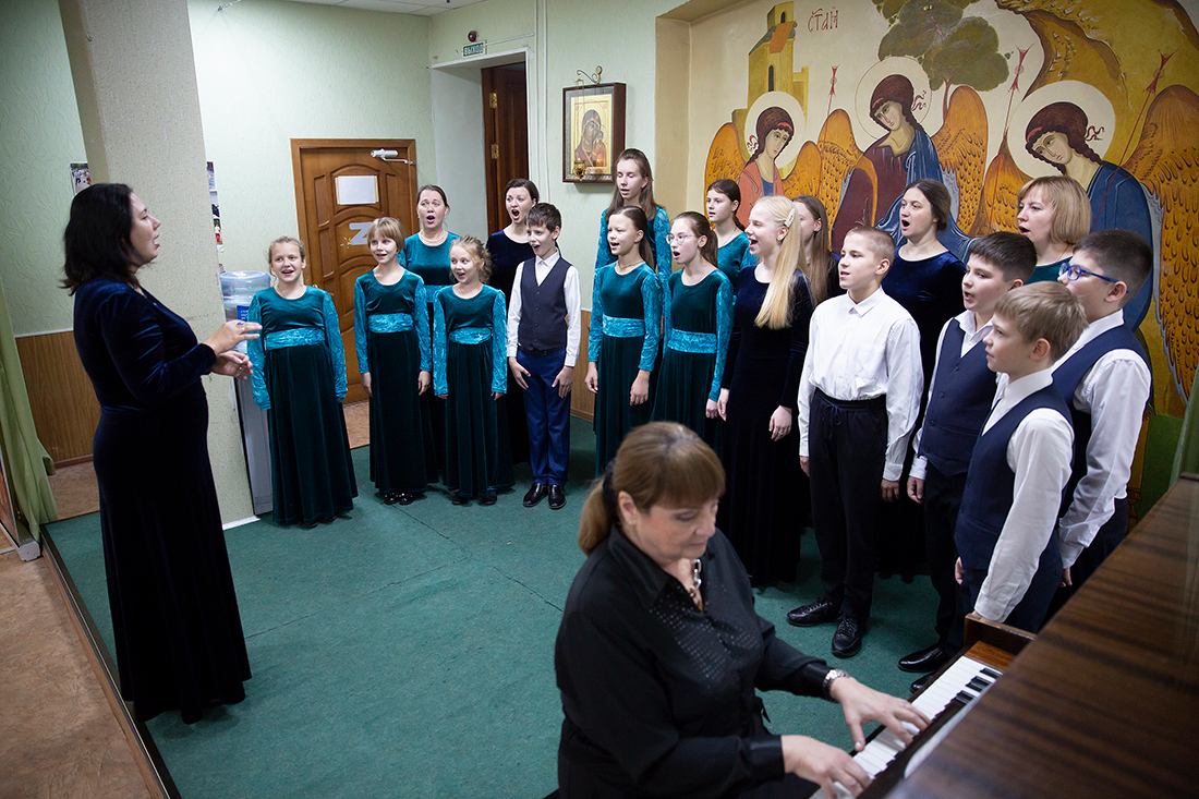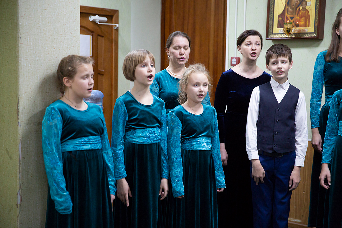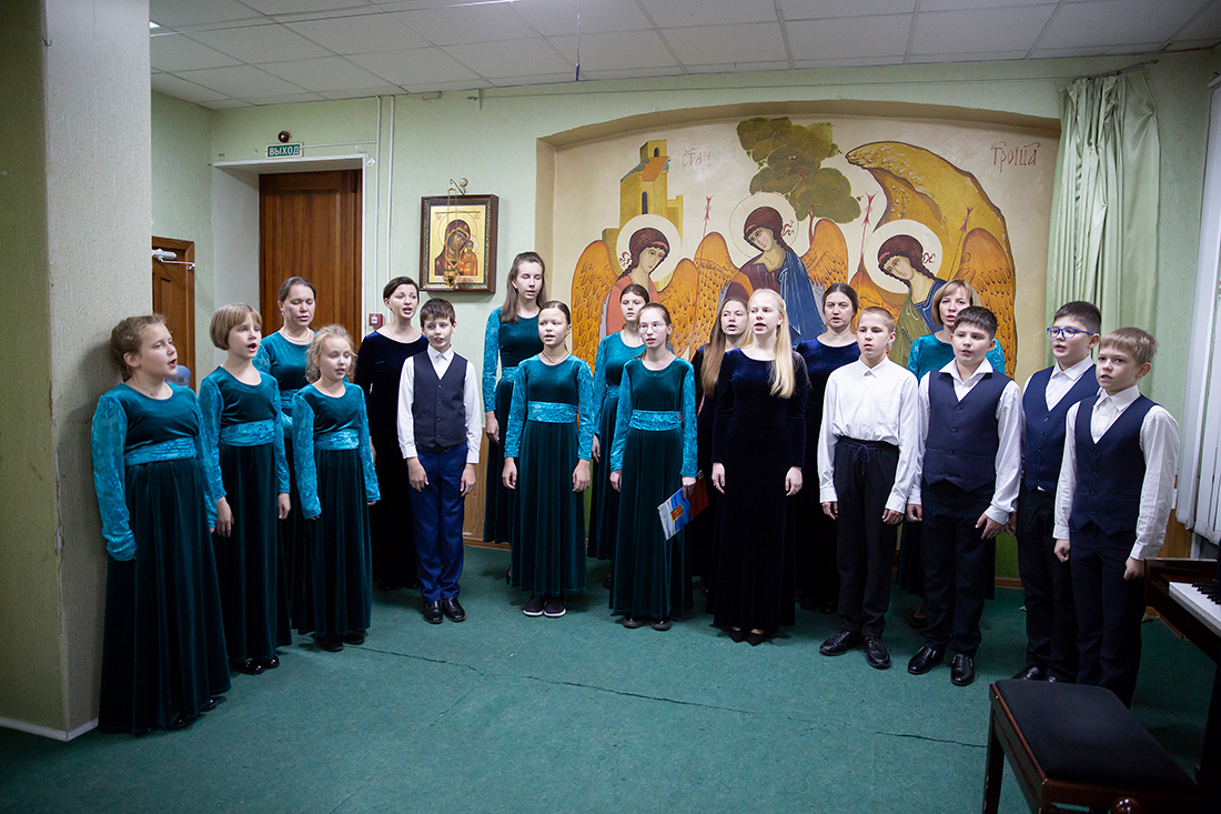 Сводный хор Православной Алексиевской гимназии и воскресной школы Троицкого собора г. Щёлково под руководством регента Анны Александровны Медведевой и концертмейстера Ирины Ивановны Илларионовой исполнили произведение российского композитора Дмитрия Степановича Бортнянского «Единородный Сыне».