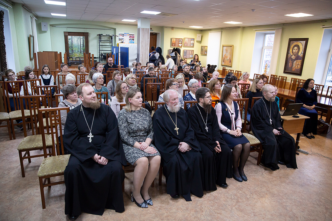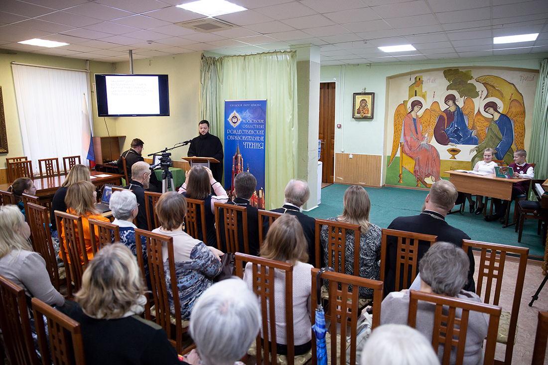 С докладами выступили: учитель физики школы №17 городского округа Щёлково Юлия Константиновна Новосельцева, учитель русского языка и литературы Лицея города Фрязино Наталья Ивановна Пилипенко, клирик Троицкого собора города Щёлково, член Союза композиторов России диакон Роман Галиев и учитель изобразительного искусства Православной Алексеевской гимназии Ирина Станиславовна Урюкова.